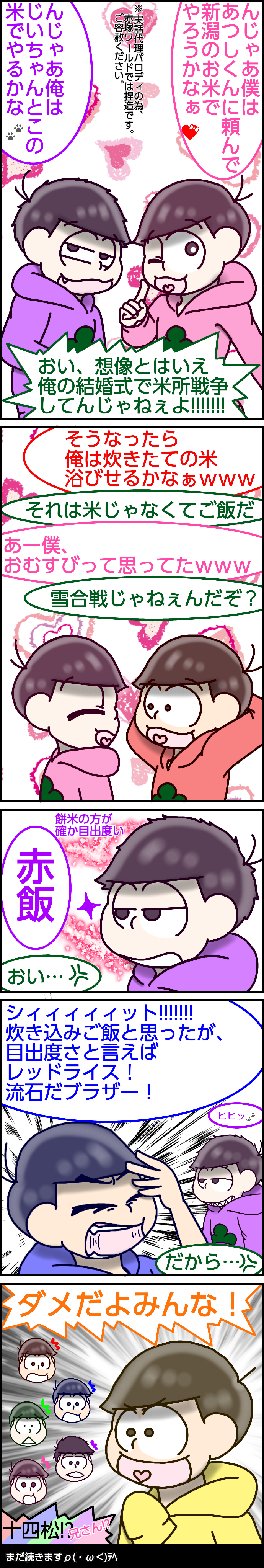 【六つ子】結婚式と米騒動(実話代理パロ)【自分絵】②