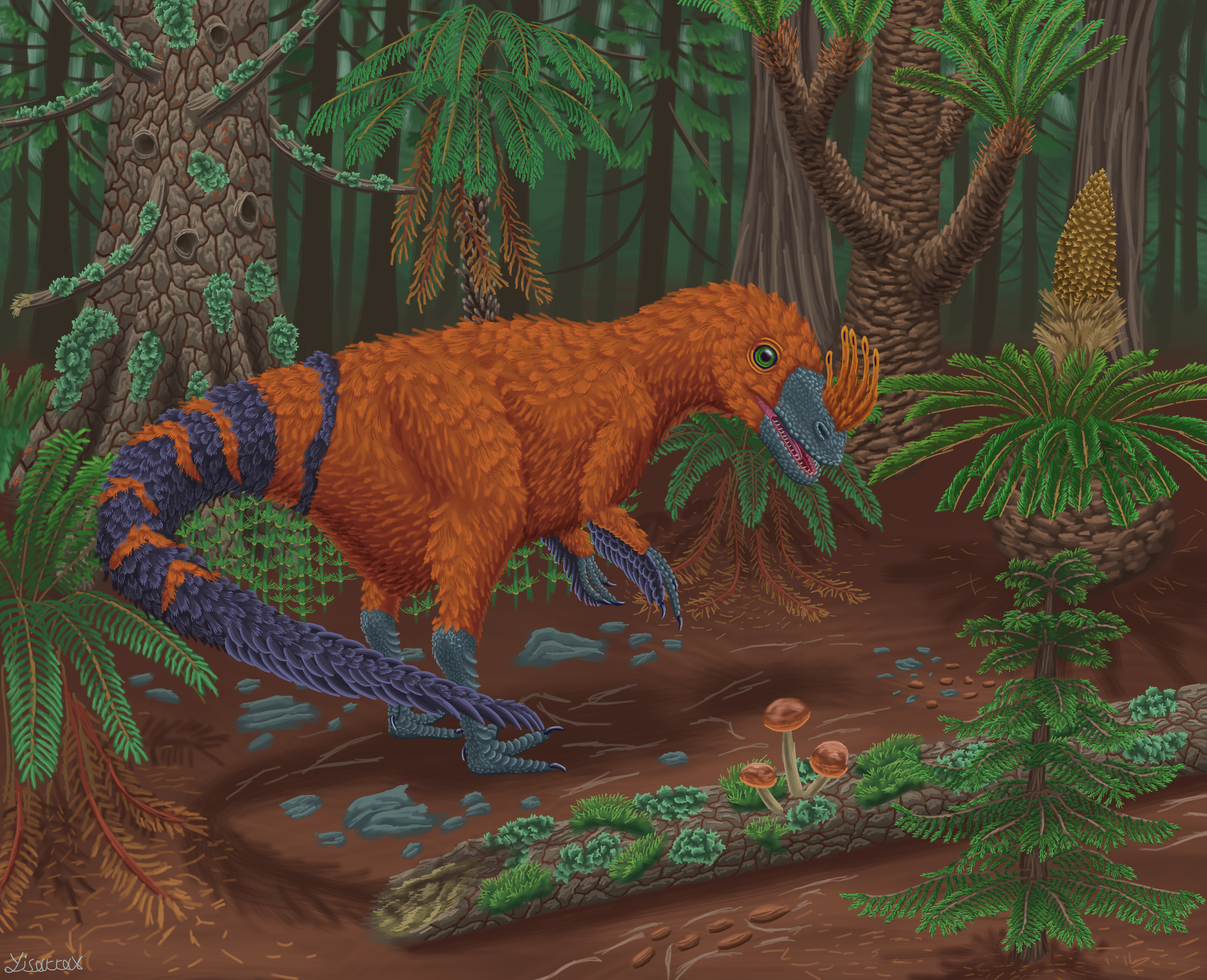 Ornitholestes hermanni in a Forest