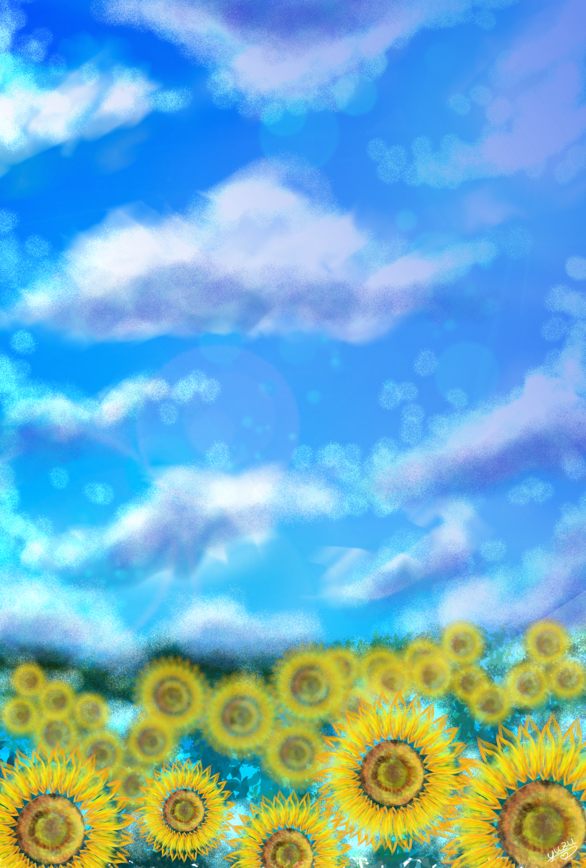 背景、向日葵畑