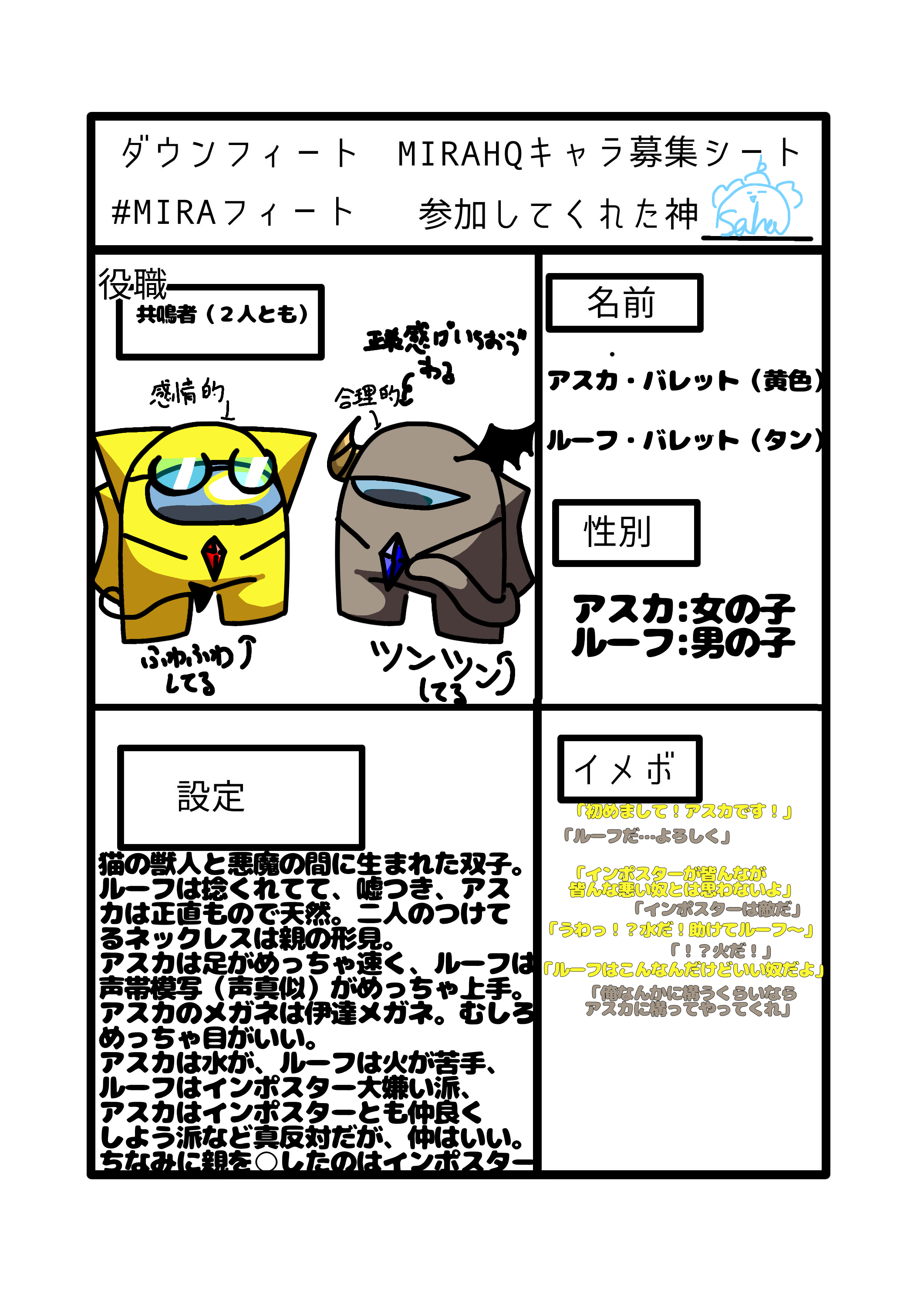 友達の代わりに出すキャラ募