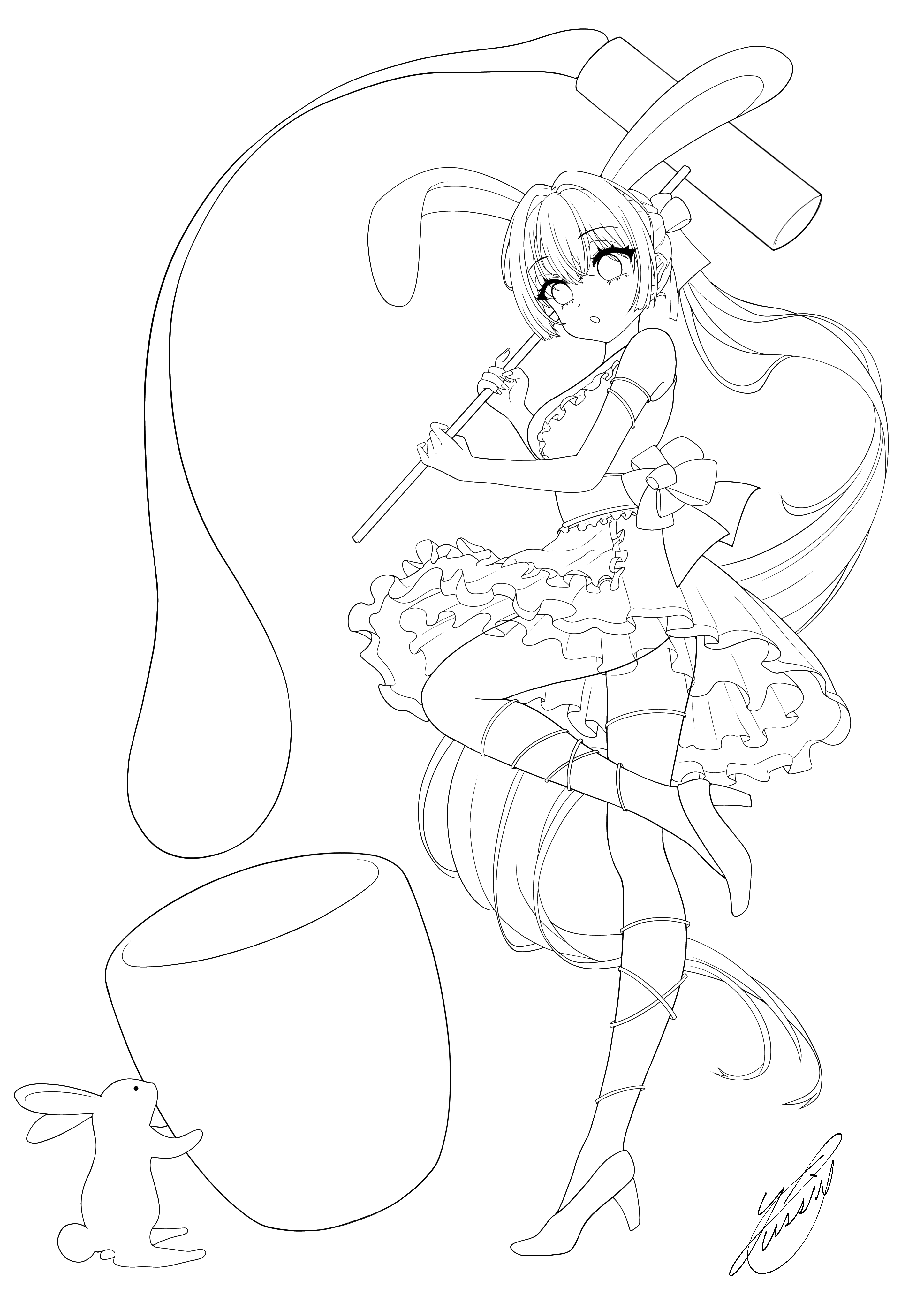 うさぎの餅つき(線画)