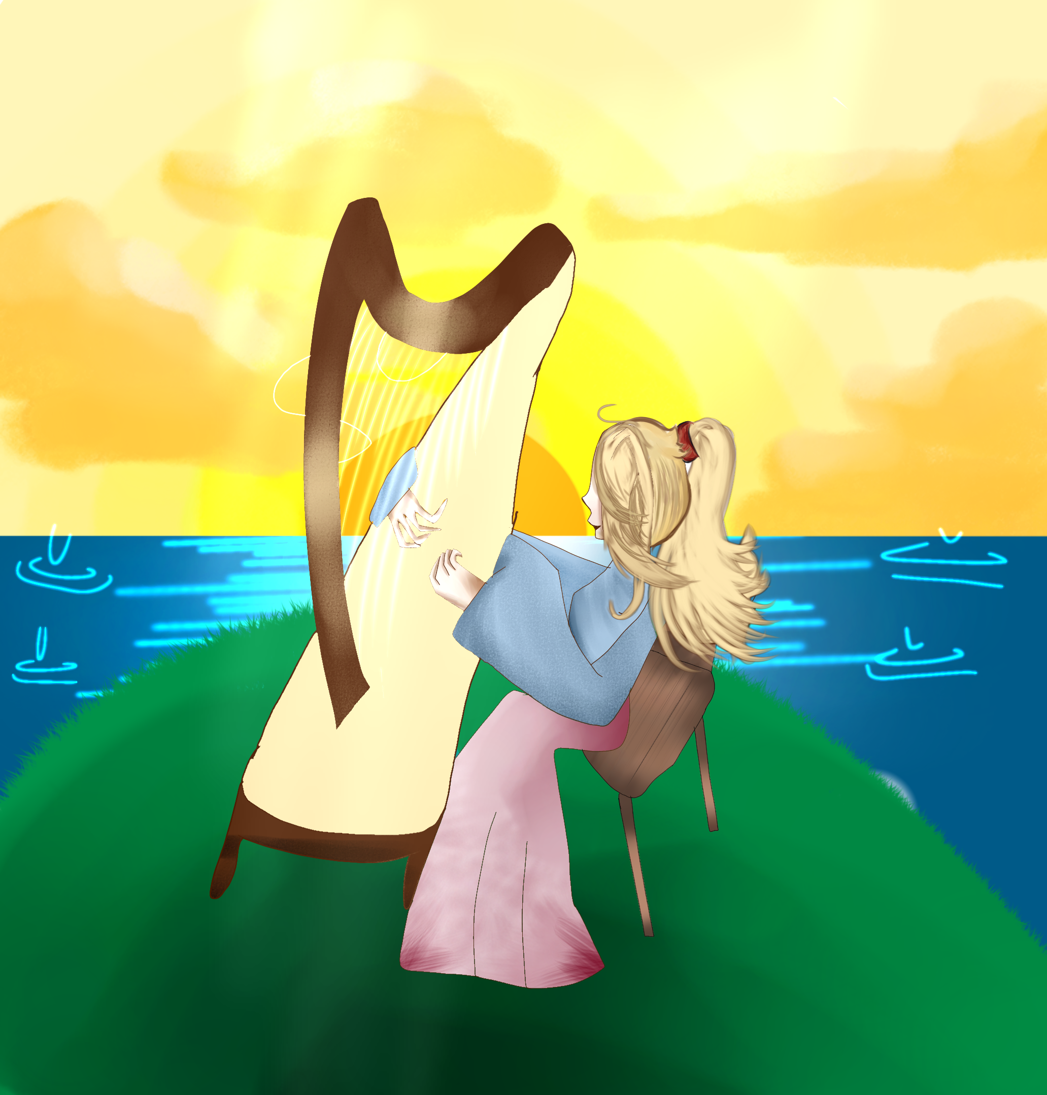 playing harp under the sunset 🌇🪉