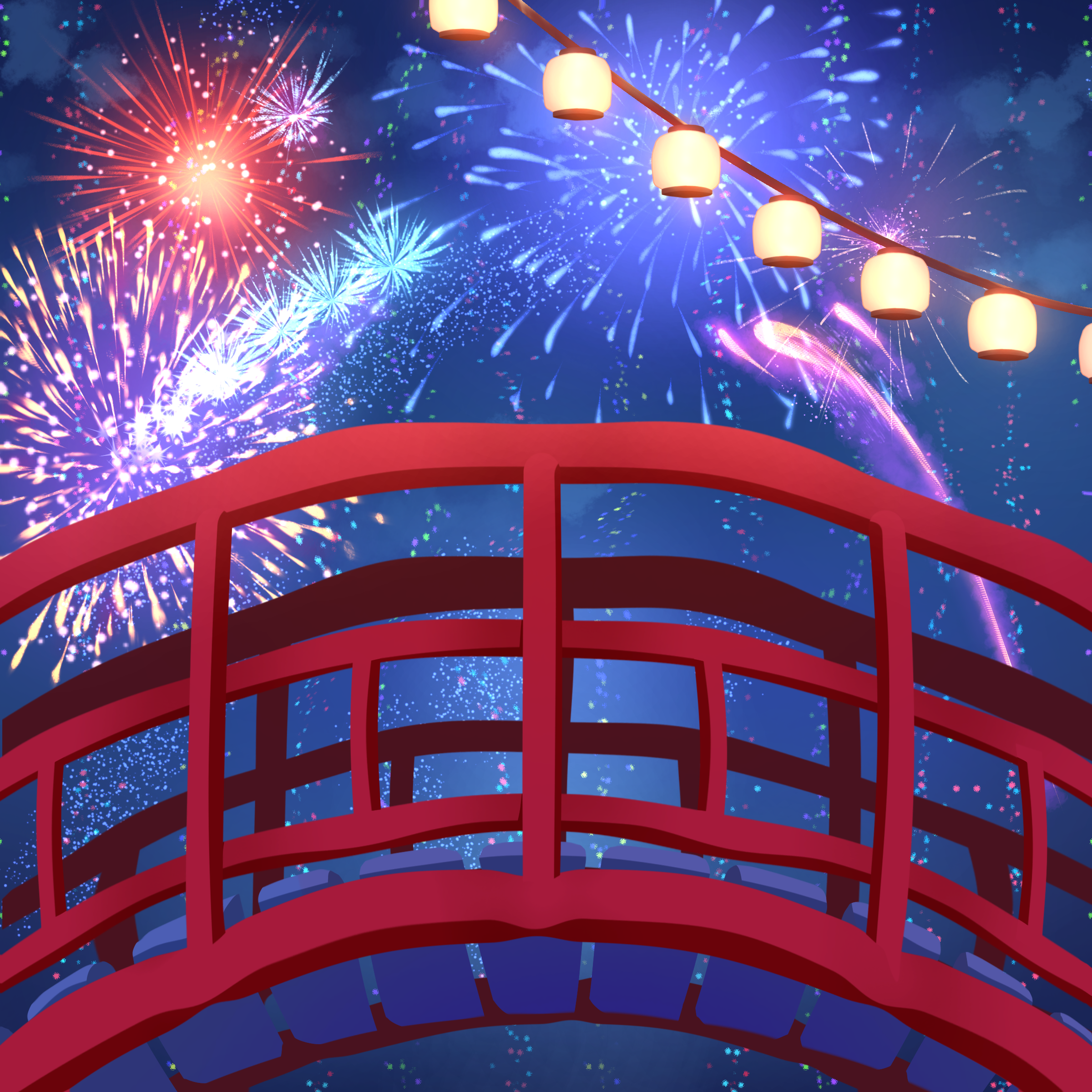 Fireworks on bridge