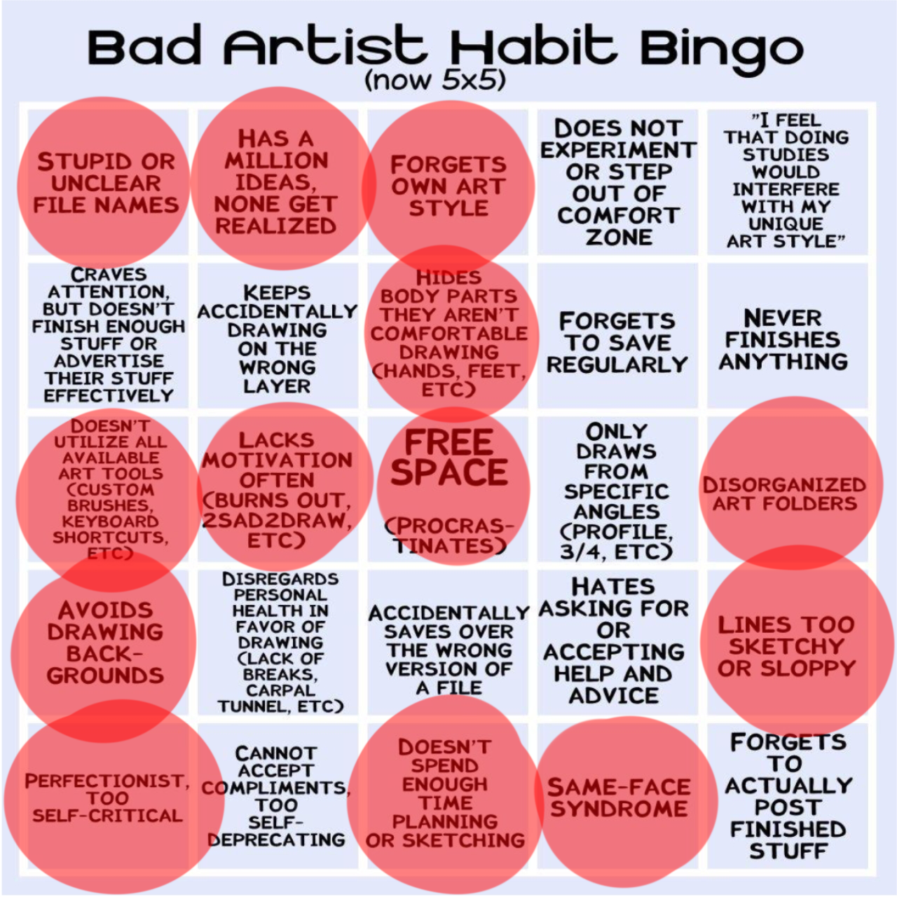 Bad Artist Habit Bingo