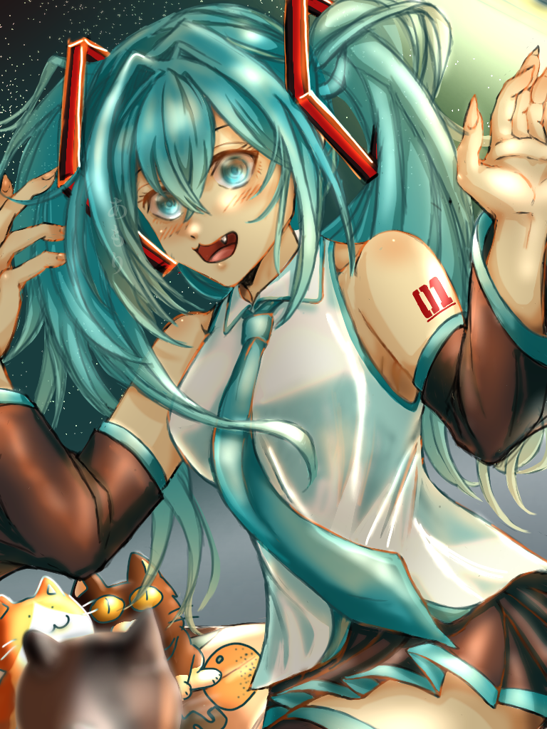「街灯の下で踊るミクちゃん&観てる🐱」
