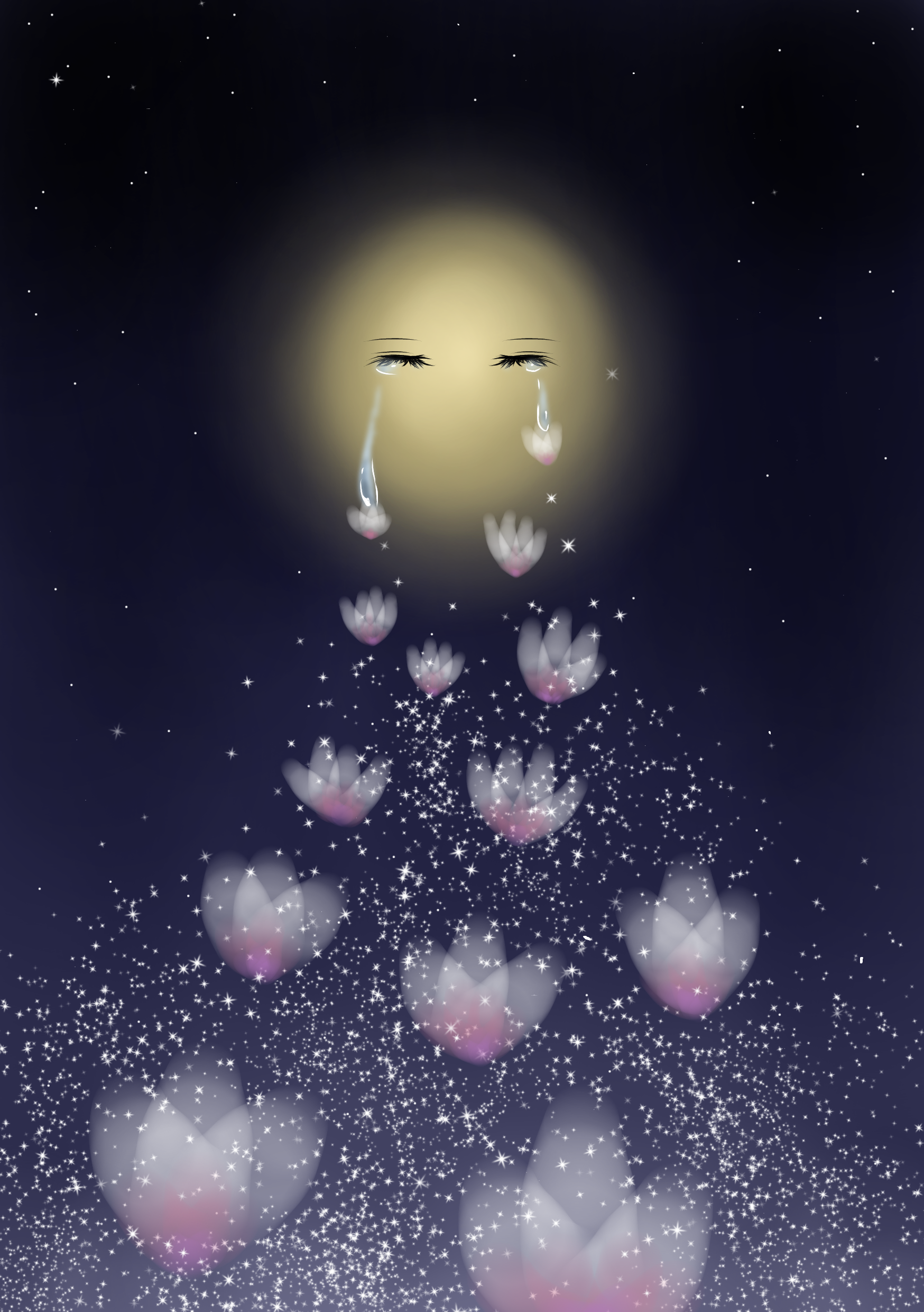 月の涙と大輪の花