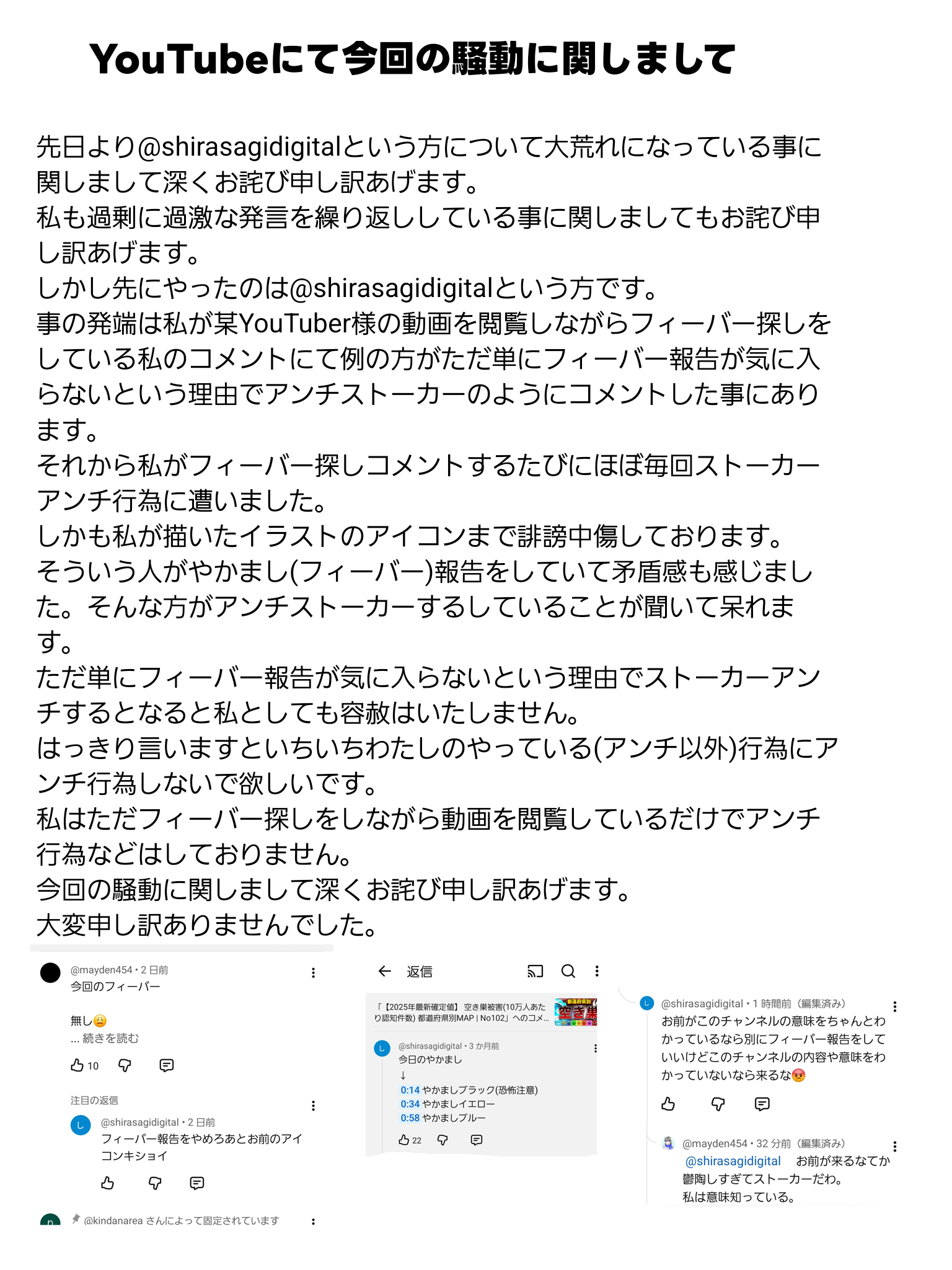 YouTubeにて今回の騒動に関しまして