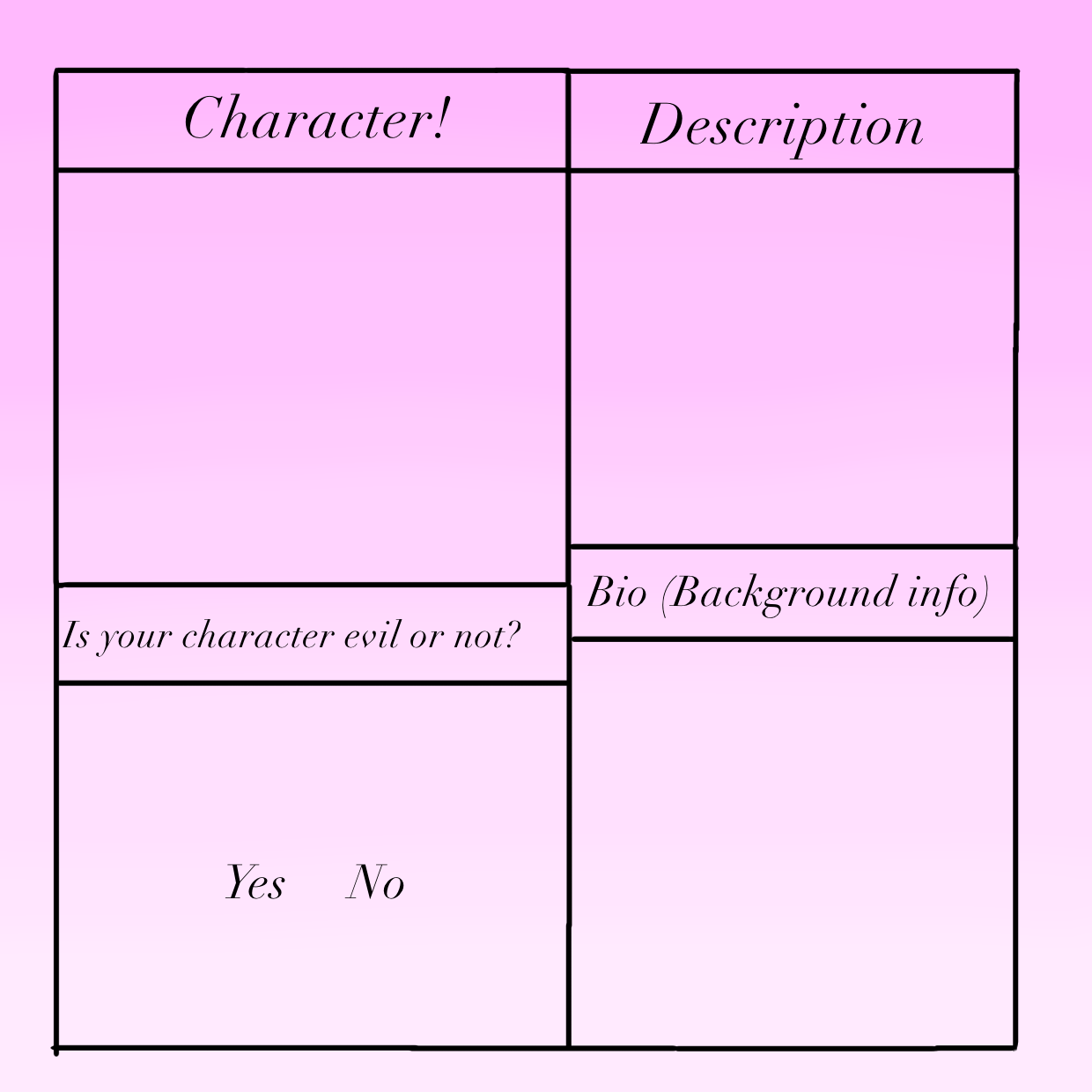 Character sheet for Lizzy’s Bakery