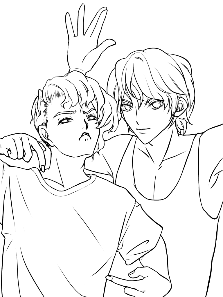 週末の落書き 19 先輩後輩っぽい男子 線画