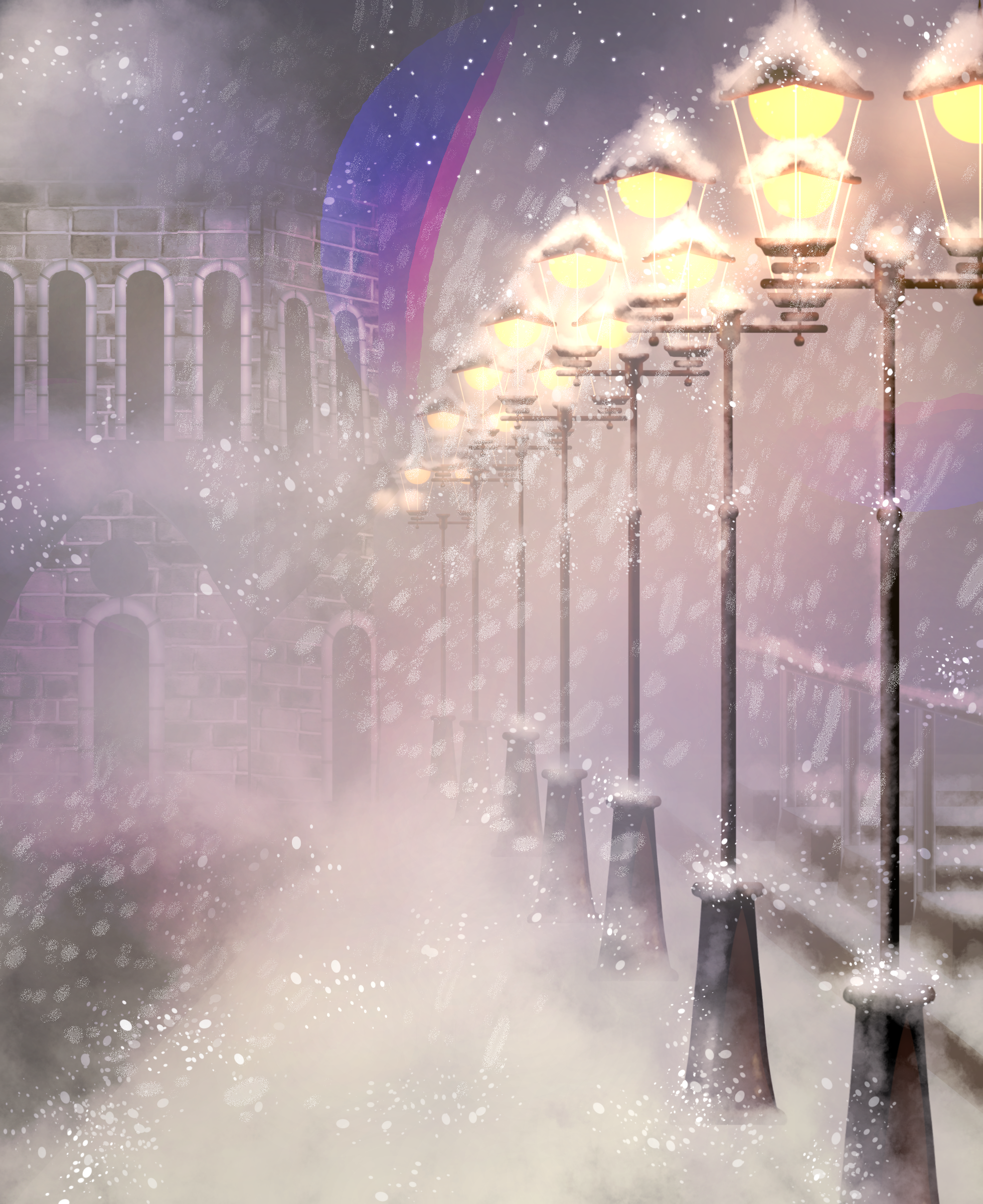 Foggy street with Streetlights