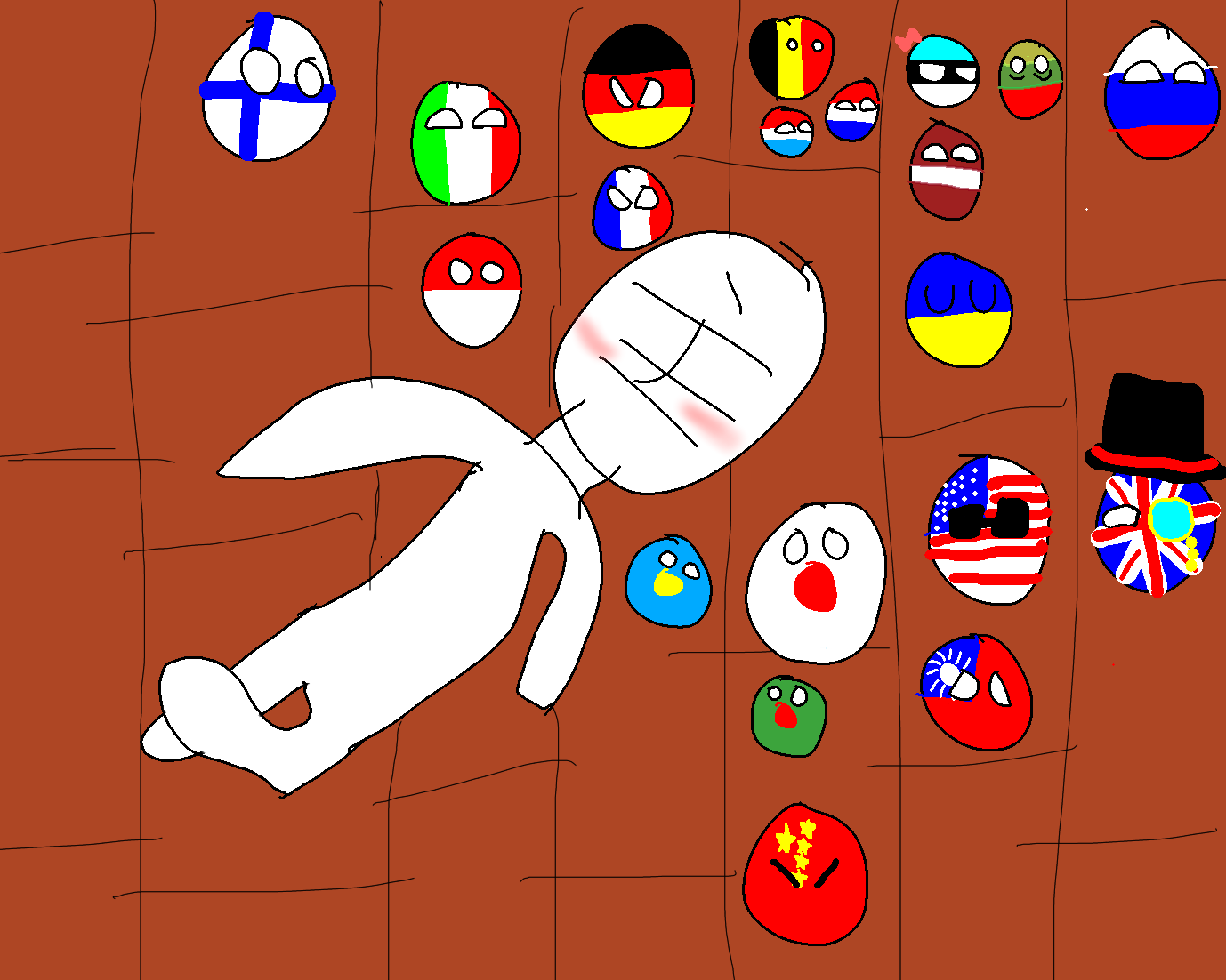 部屋でくつろぐ主とポーランドボールたち.2022.12.27-19.17