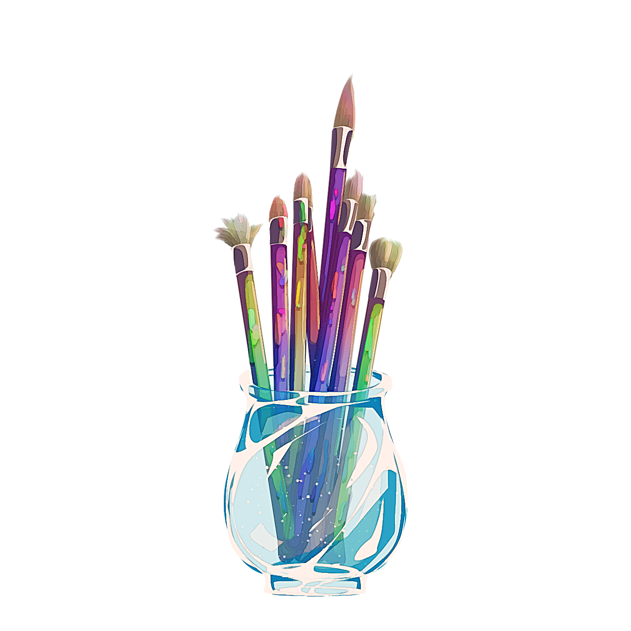 blue jar of paint brushes