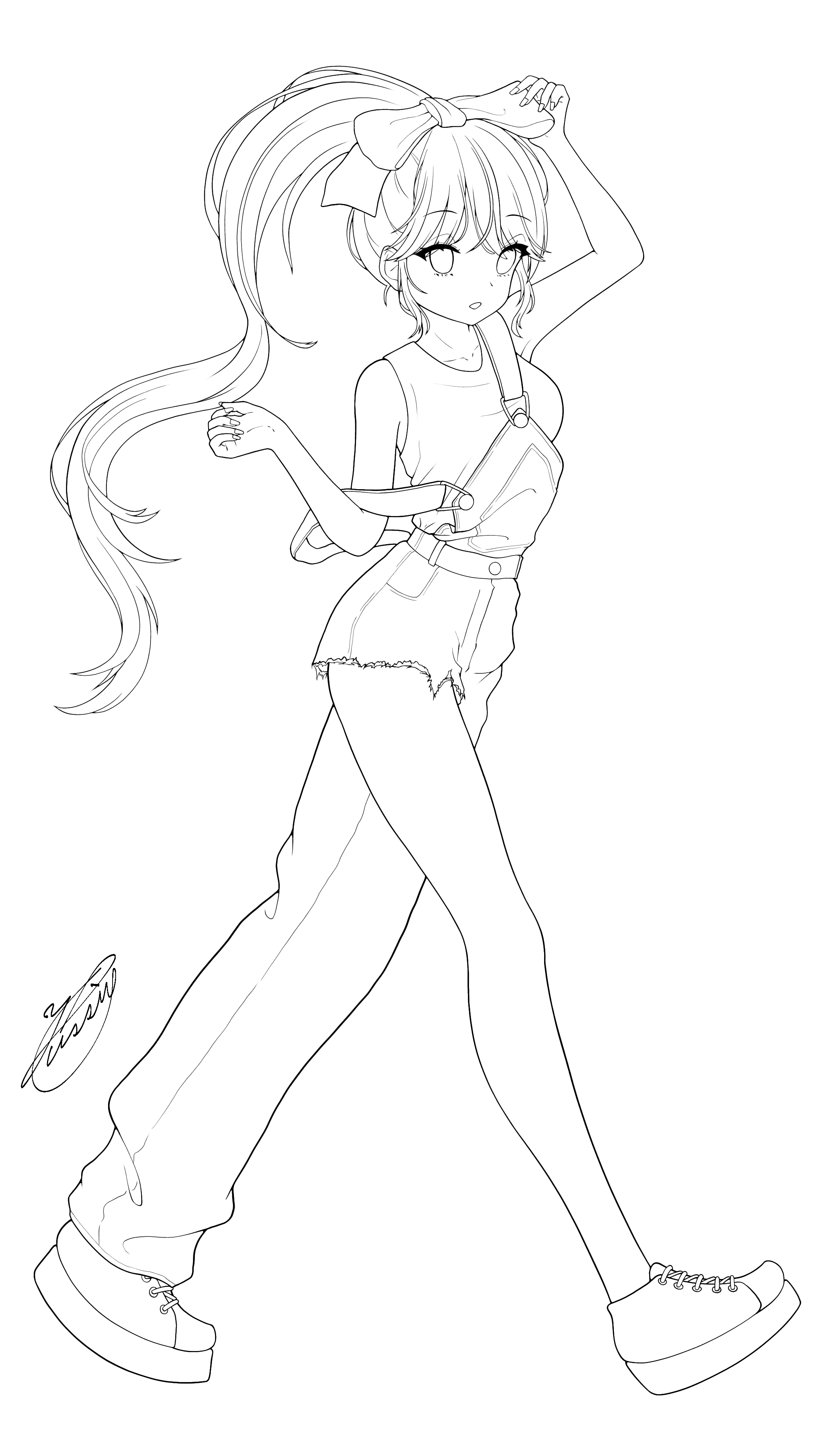 ダメージサロペットパンツ(線画)