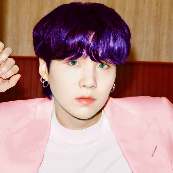 suga with purple hair and green eyes