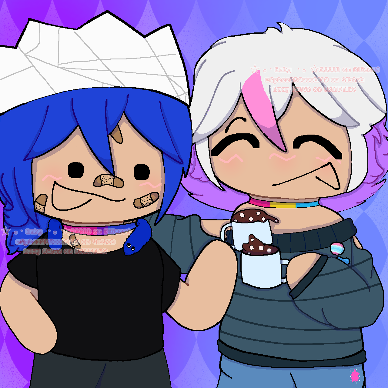 Two little sillies drinkin hot cocoa ^o^