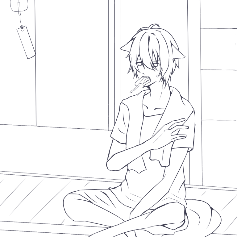 夏 縁側 ハル(線画)