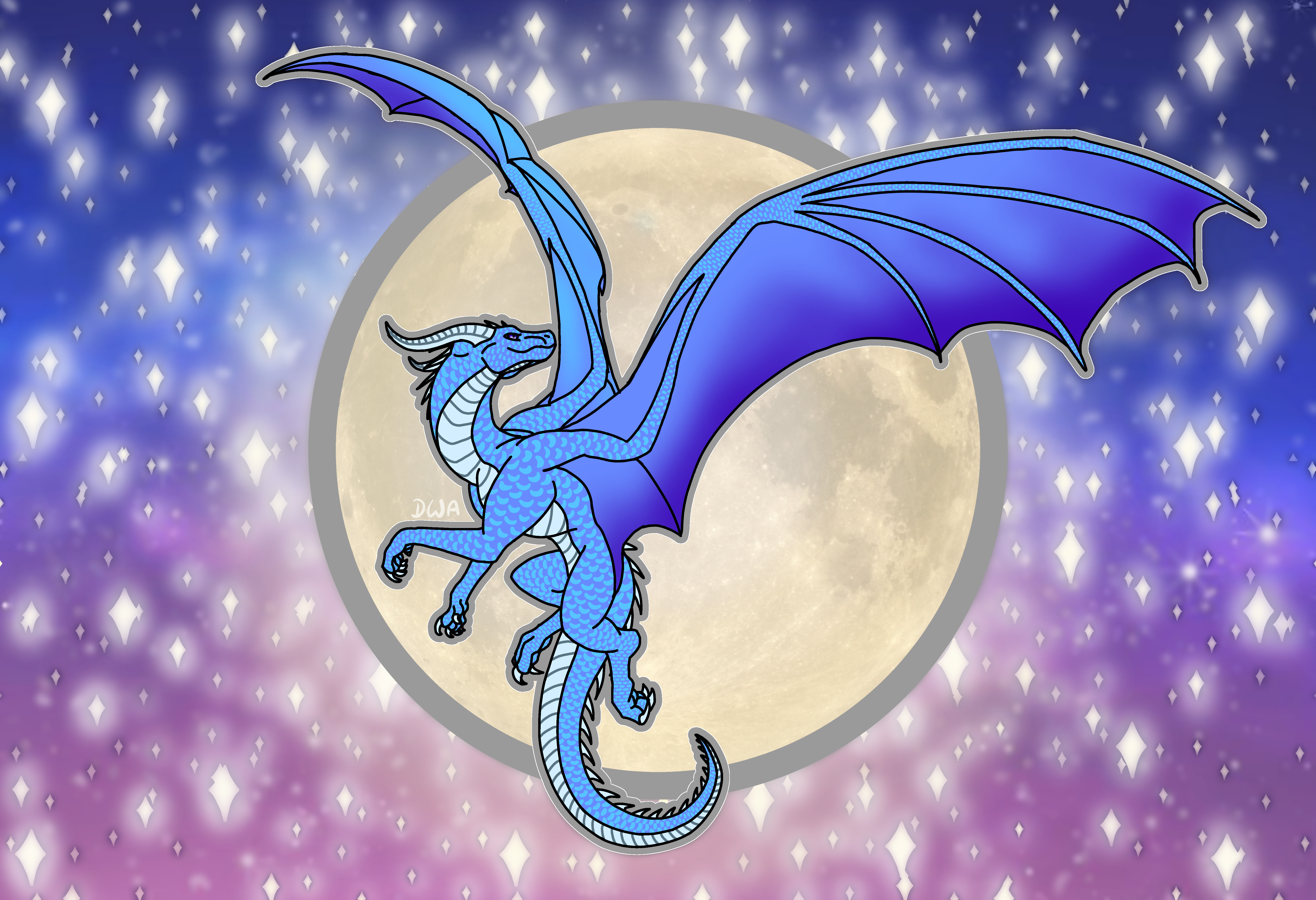 Dragon with moon and stars