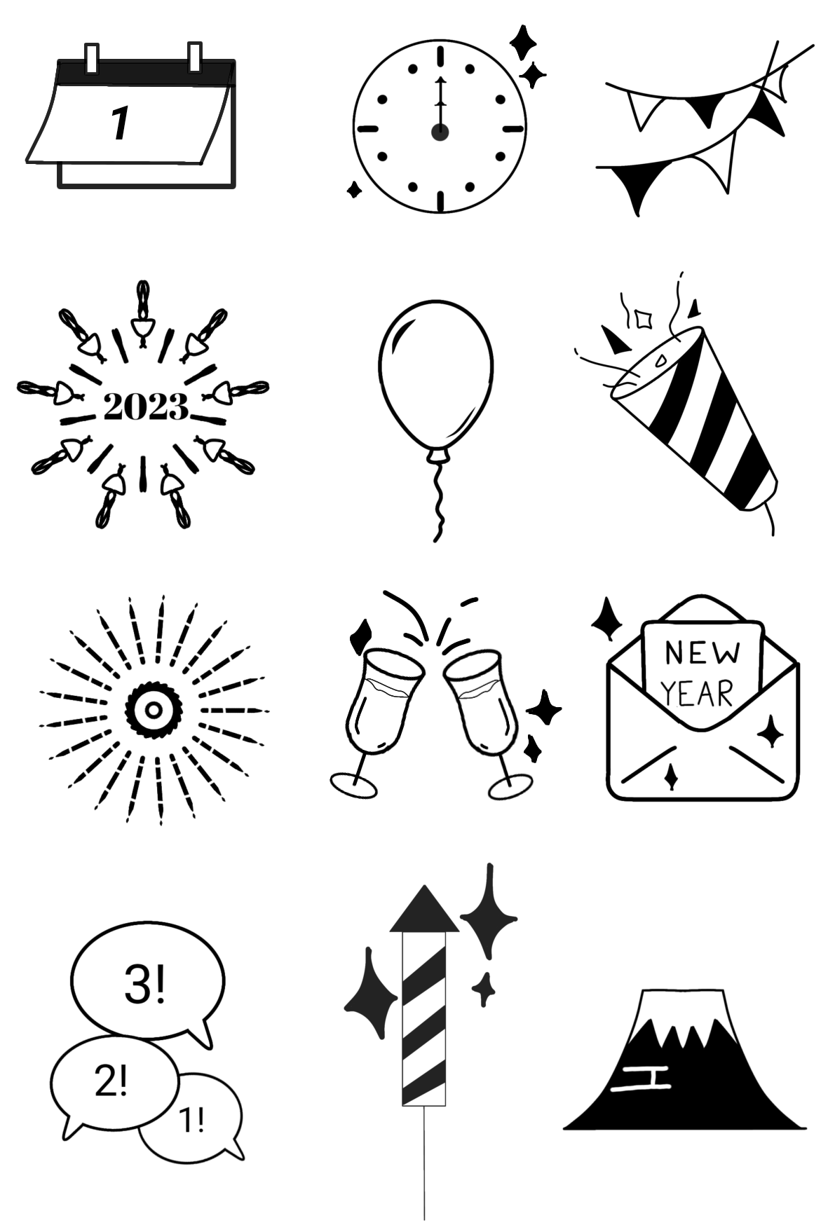 New year icons (BW)