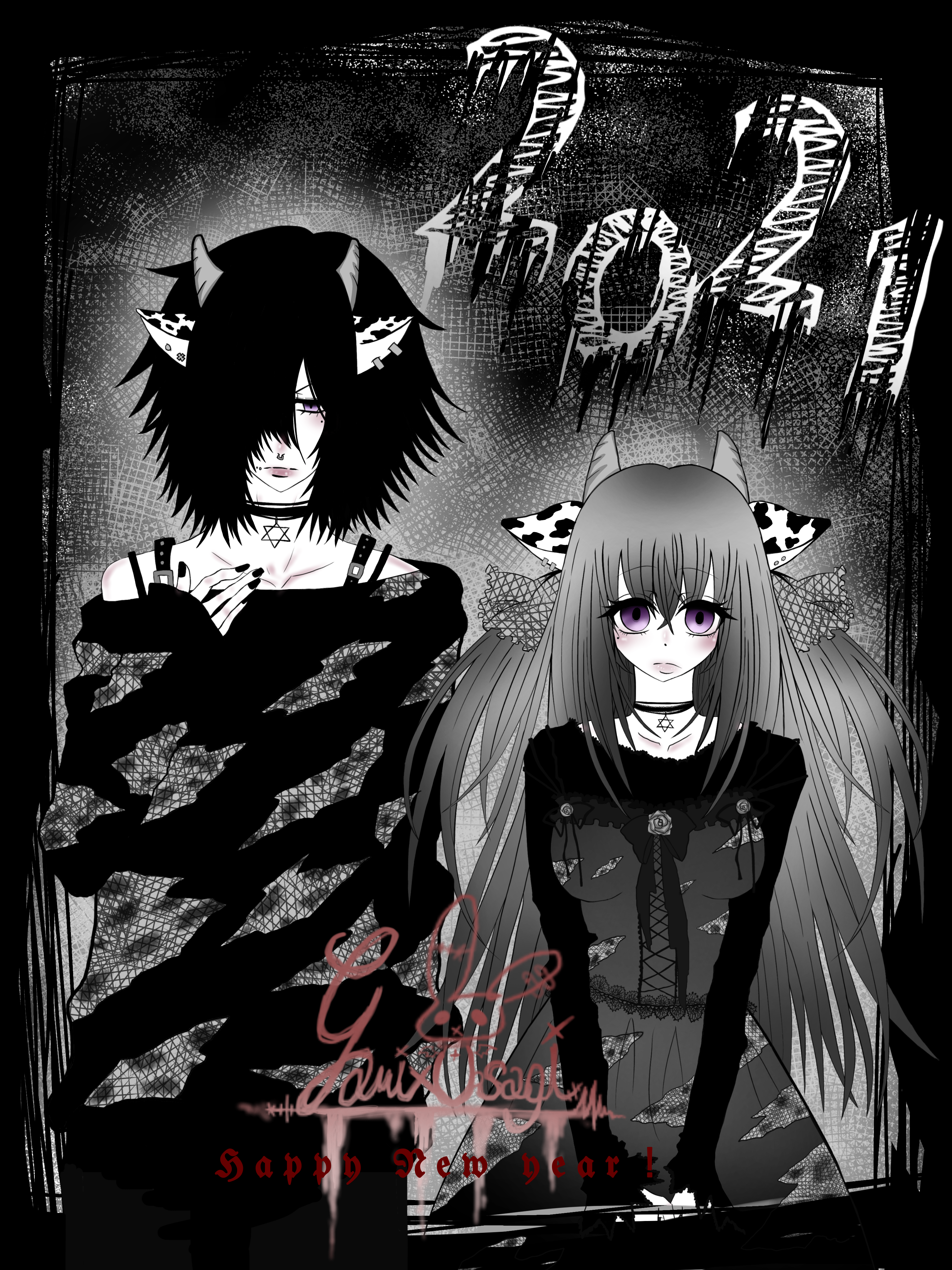 丑年擬人化モノクロ