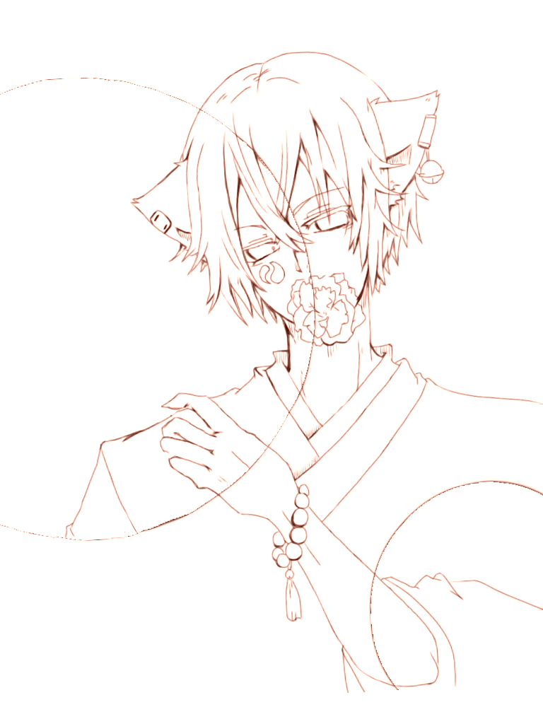 【線画】和装猫系男子