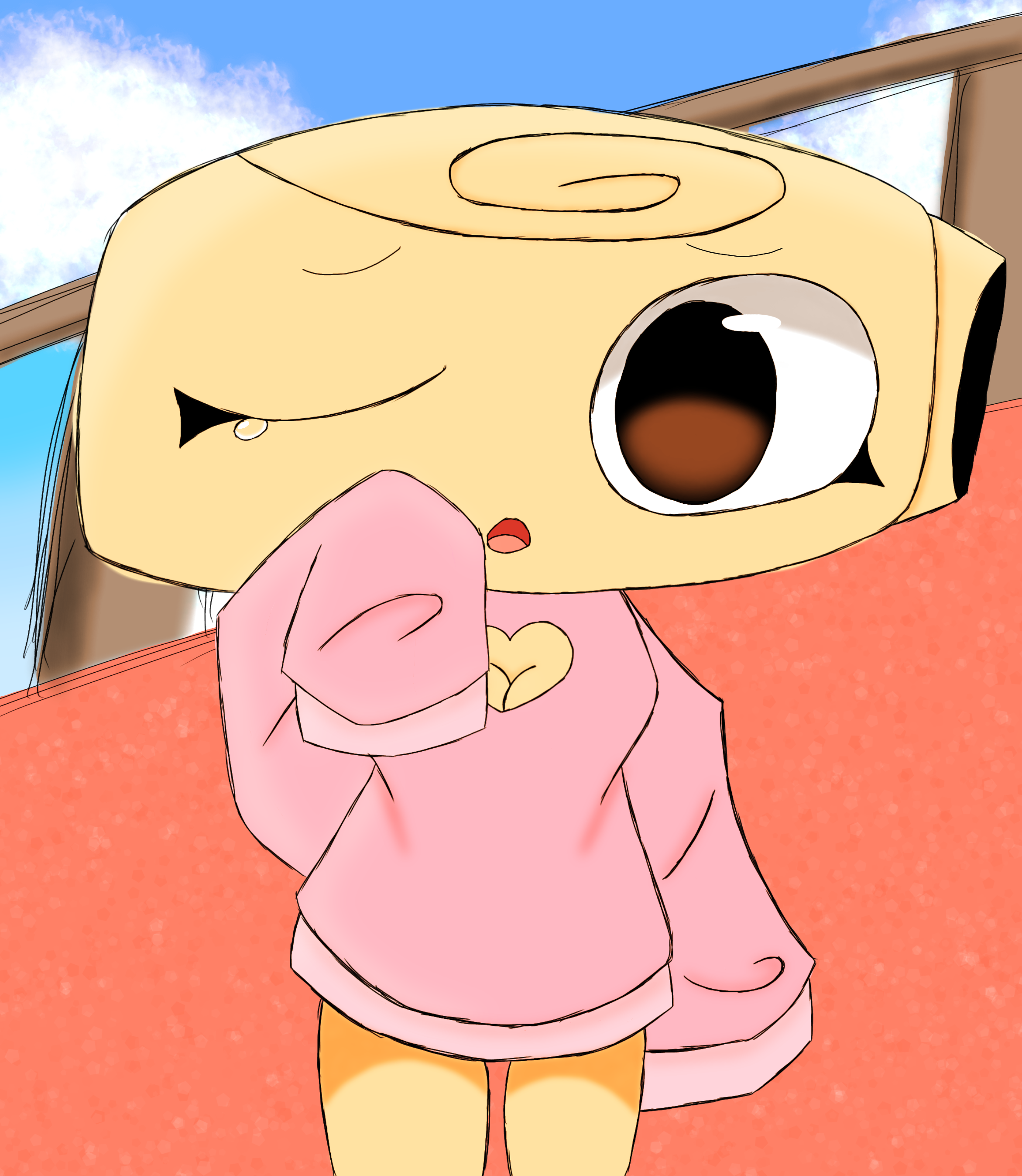Shelly looks at you on the balcony