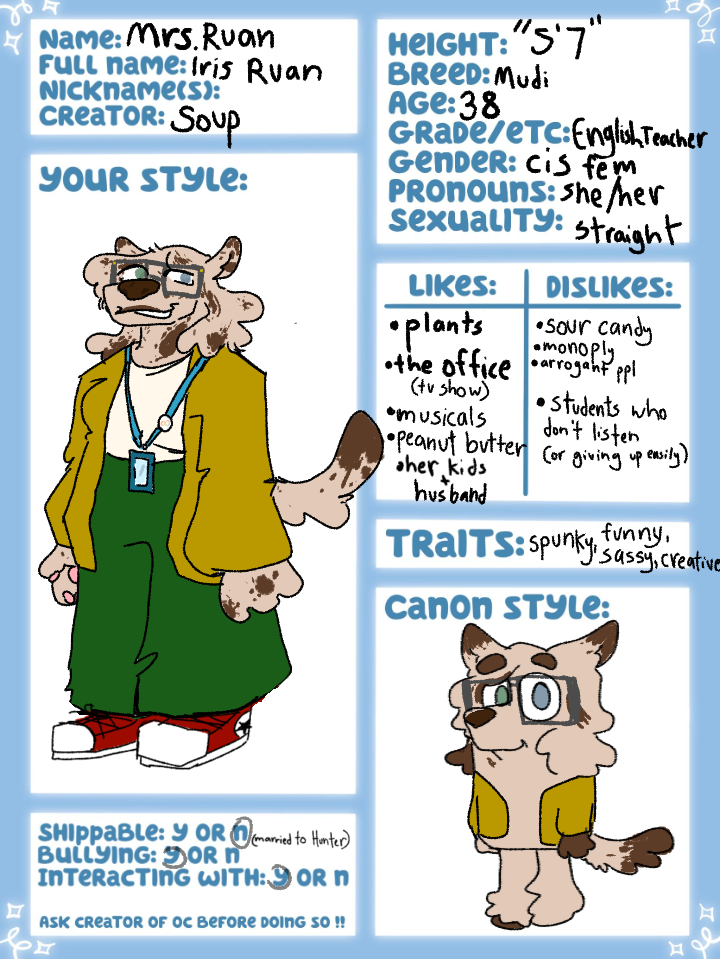 Bluey highschool au character sheet