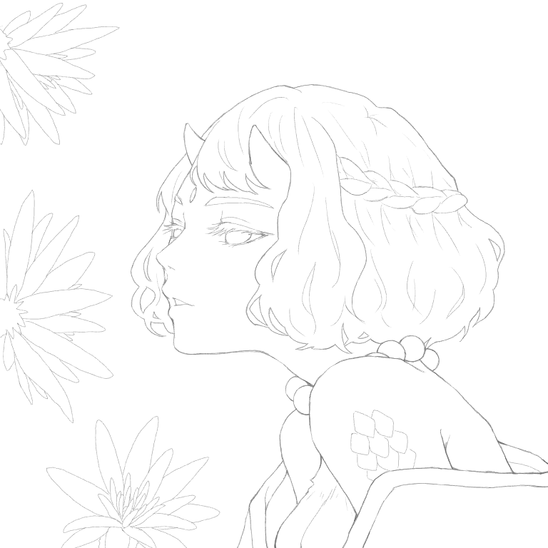 【線画】鬼娘