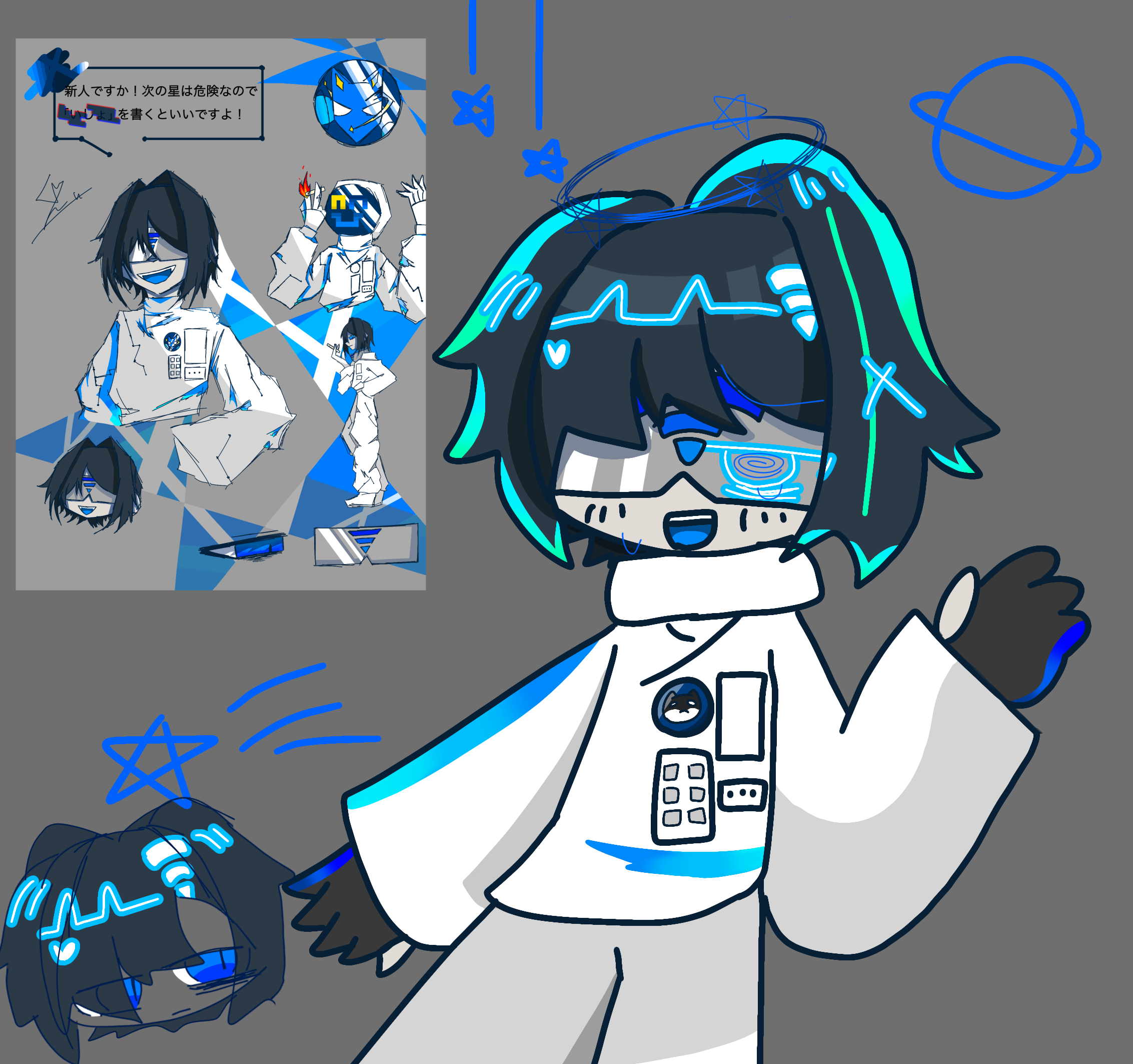 学校の友のキャラを自分の絵柄で描いた