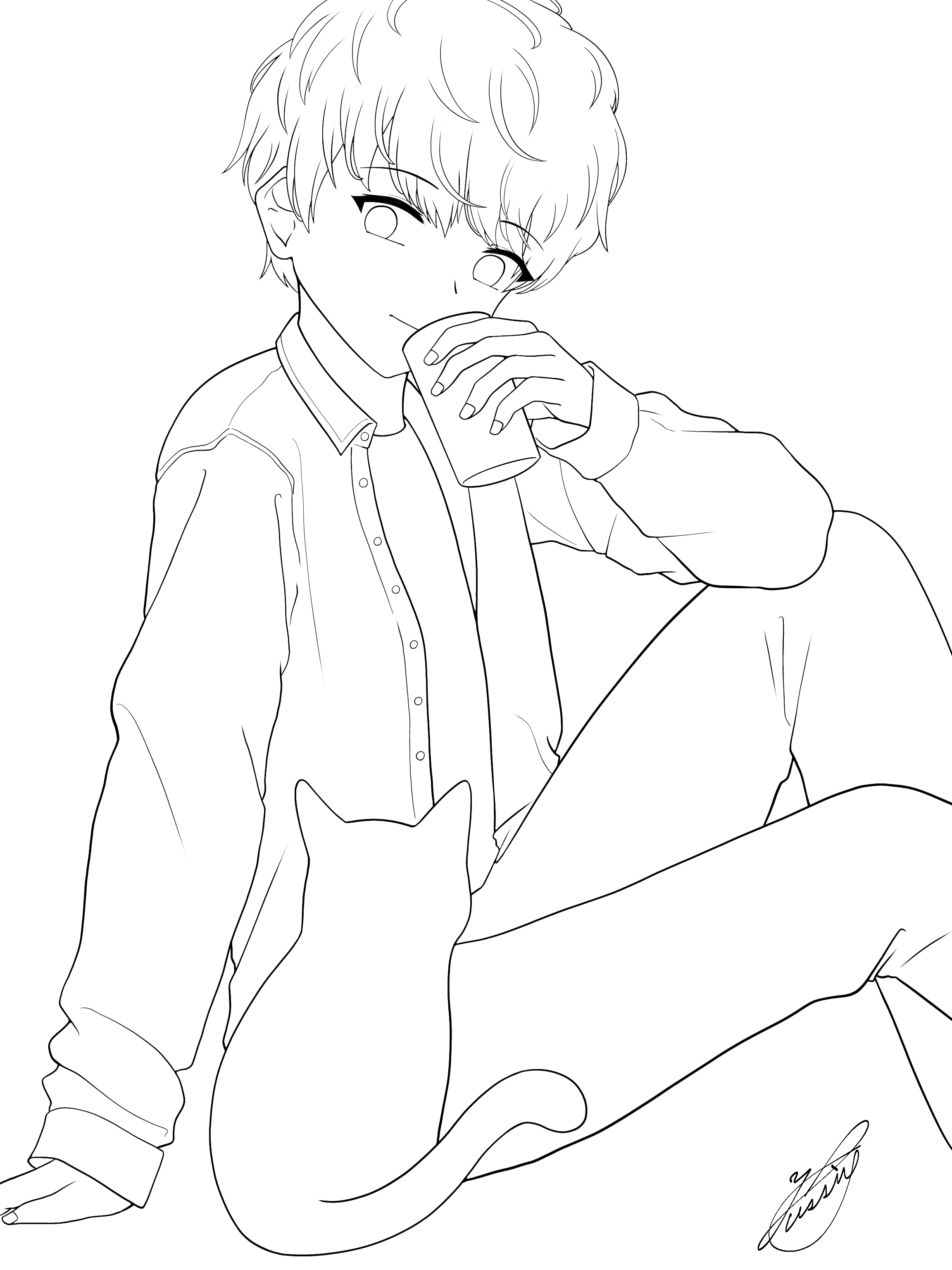 いたおさんとねこ(線画)