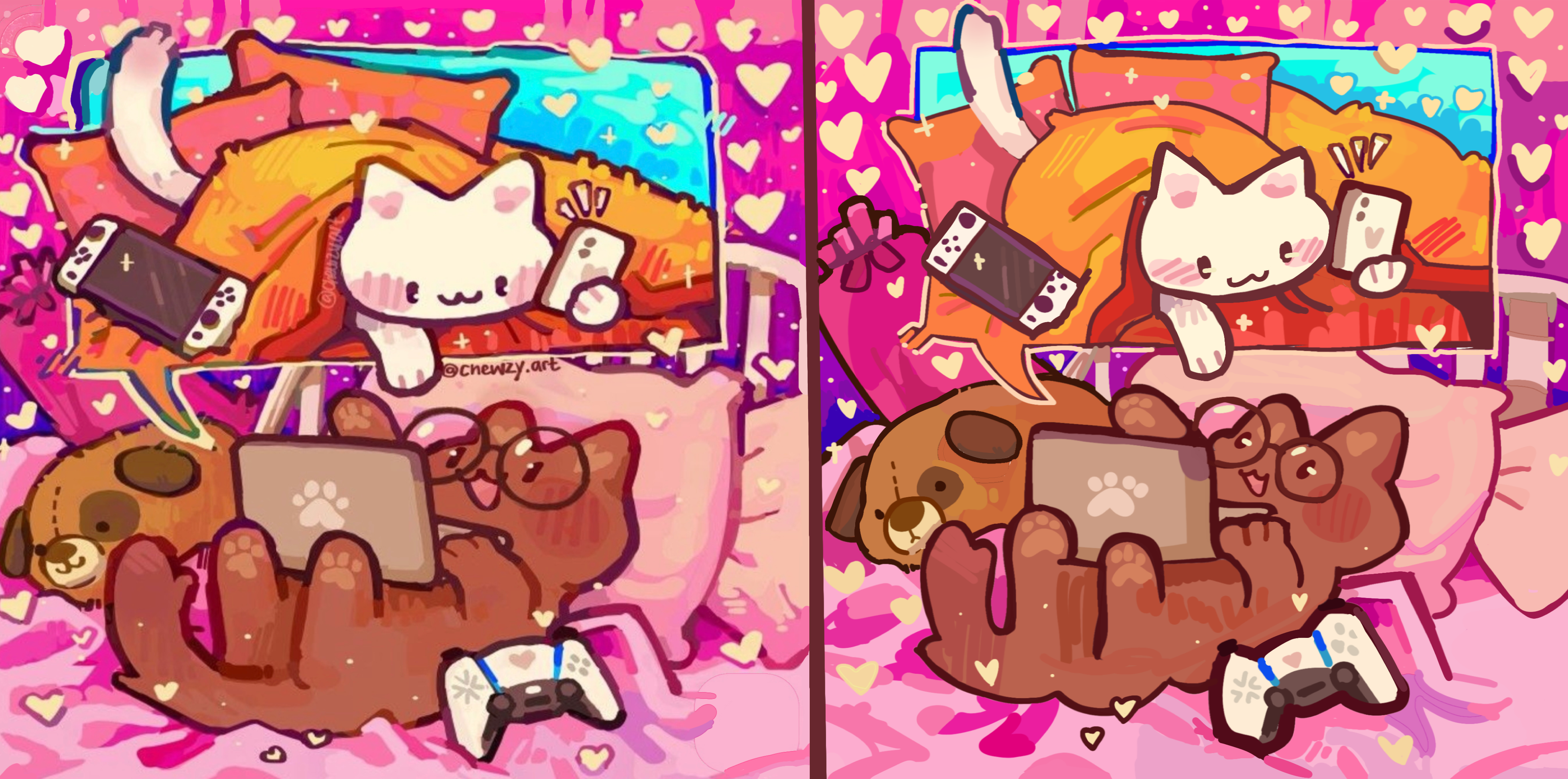 comparison. two cats together