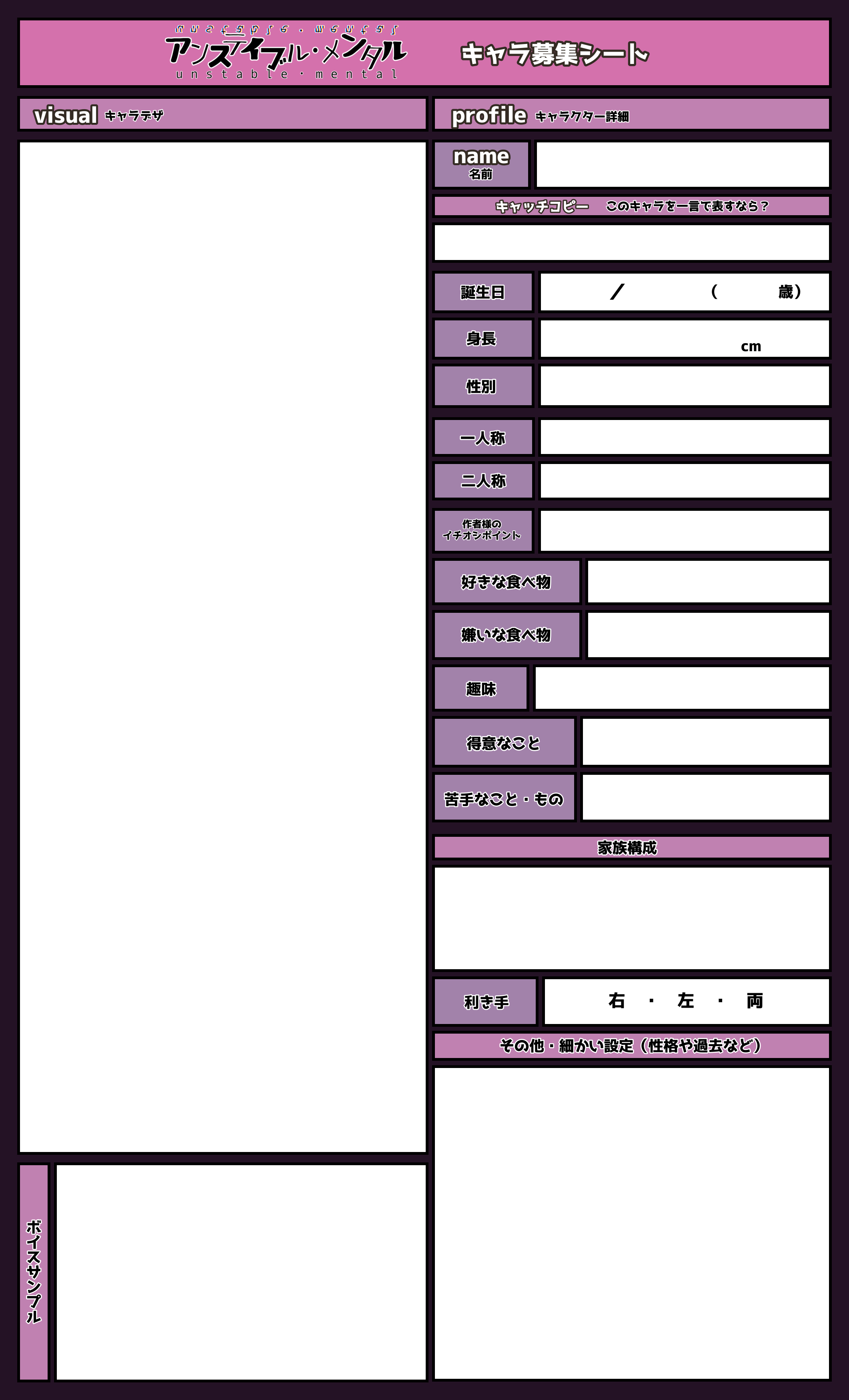 アンステ キャラ募集シート