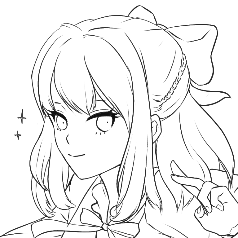 線画 なにか思いついたリボンの女の子