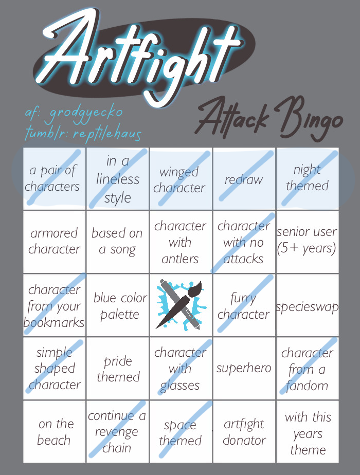ArtFight Attack Bingo