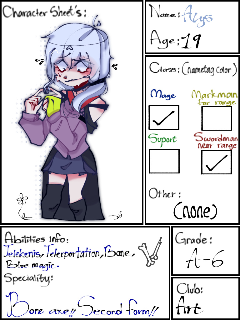 A.S.T ACADEMY oc's sheet.