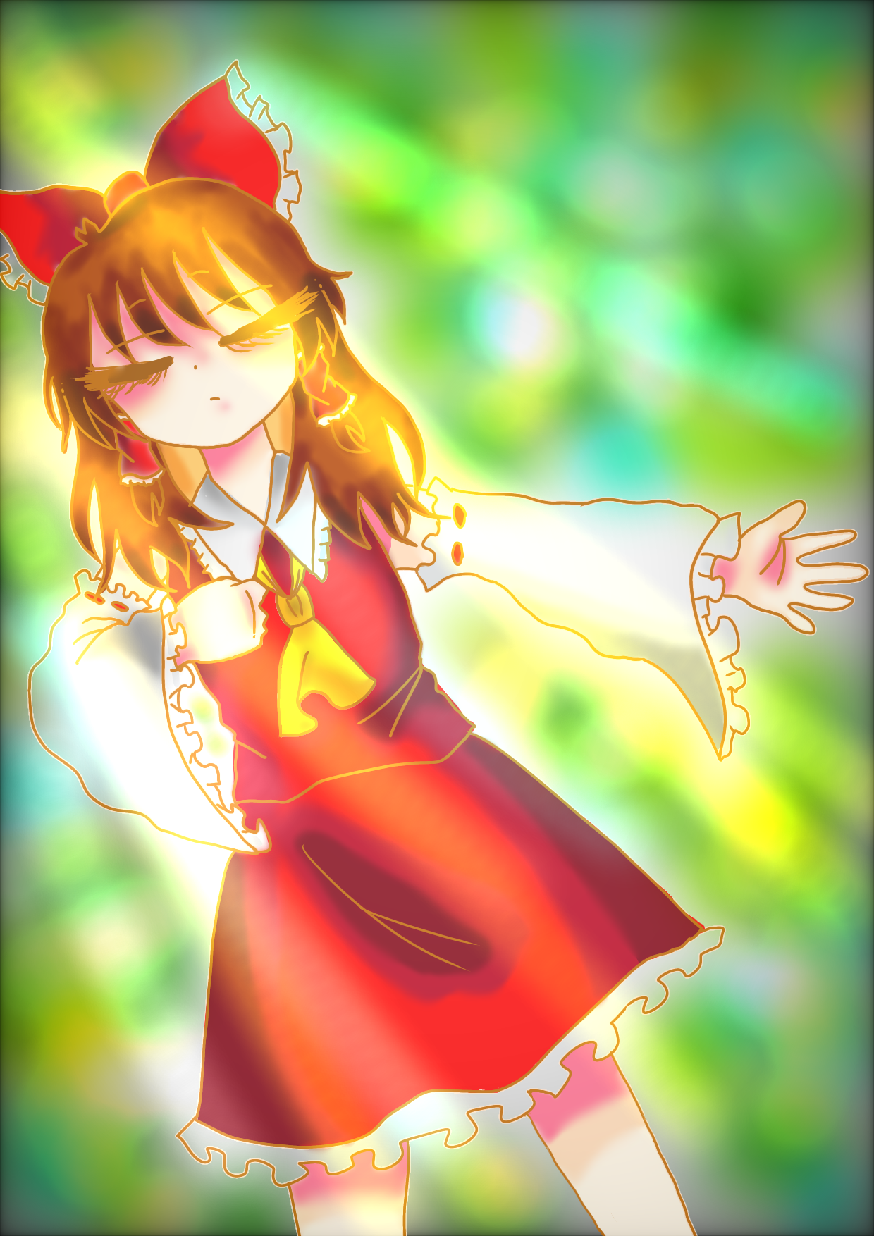 草の上で昼寝している霊夢
