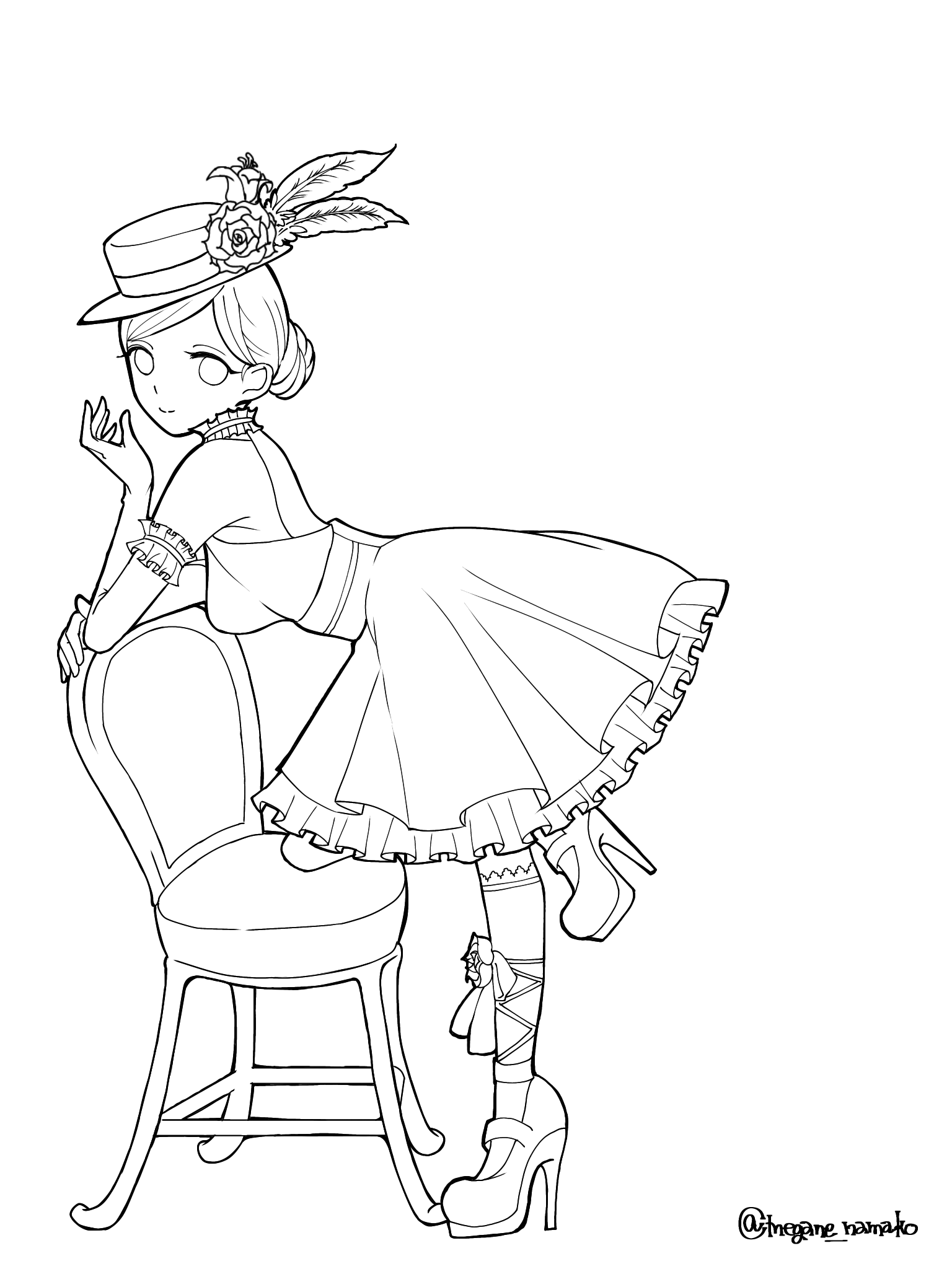 お嬢様のドレス@線画