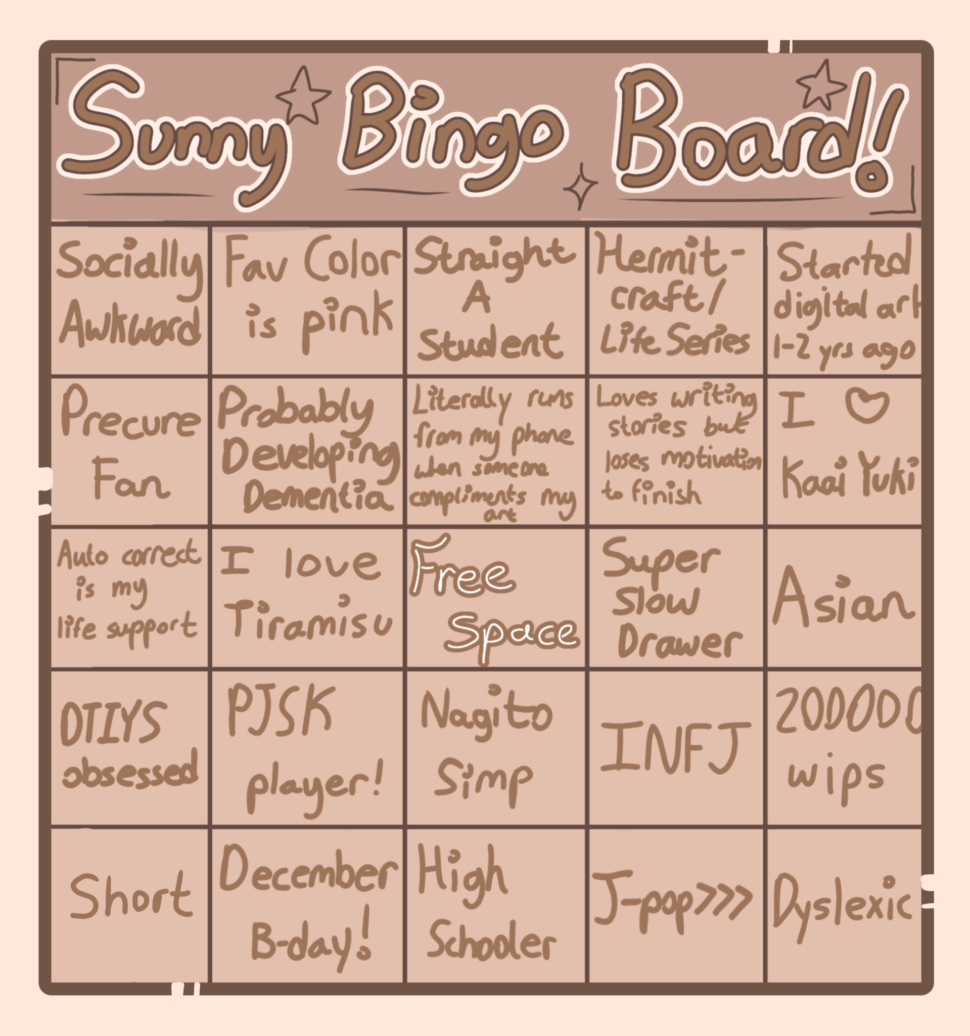 My bingo board!!