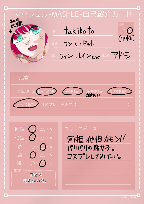 マッシュル 自己紹介