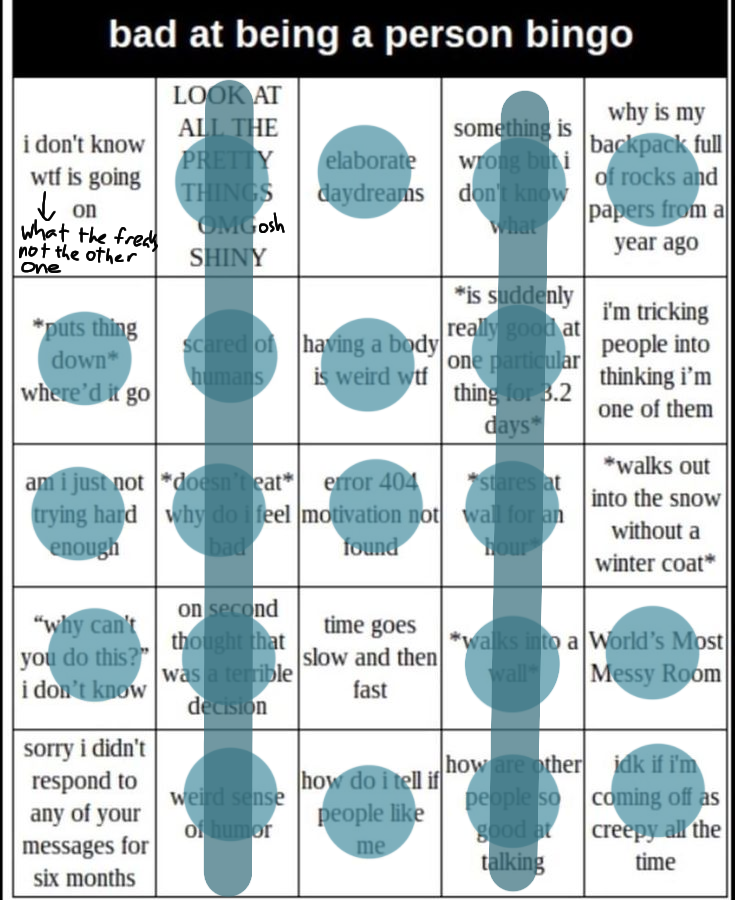 Bad at being a person bingo