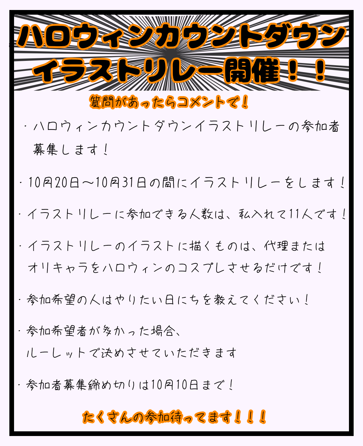 ハロウィンカウントダウンイラストリレー開催します!
