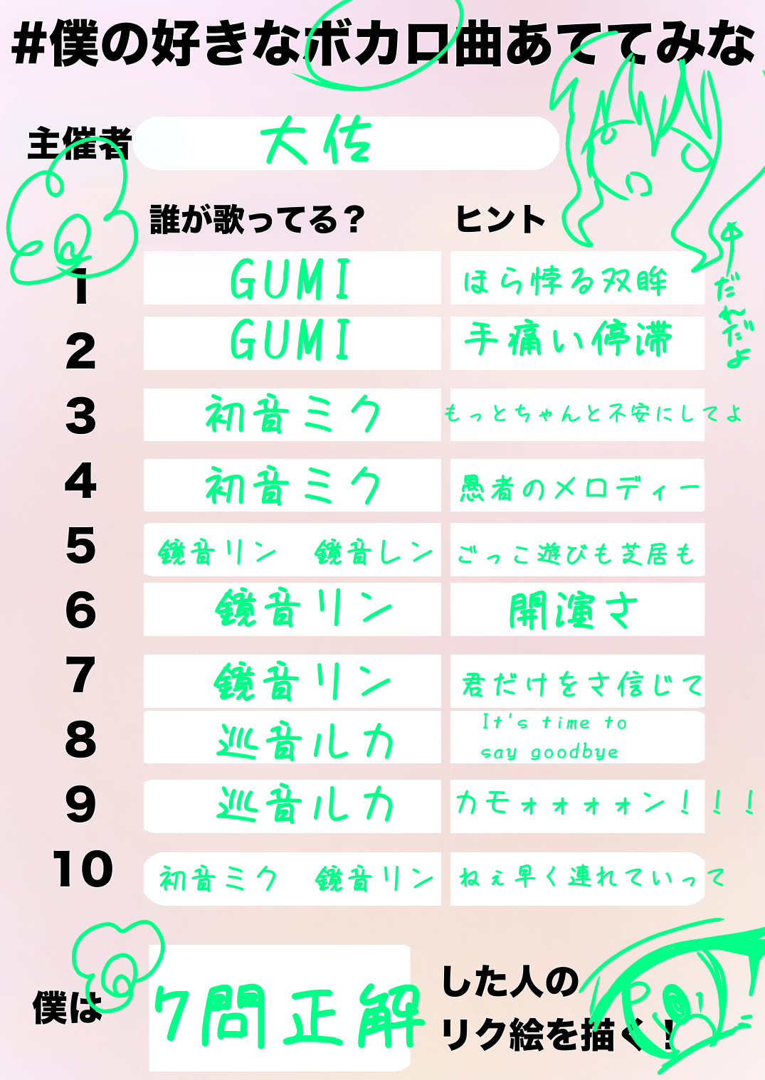 主の好きなボカロ曲当ててみな3