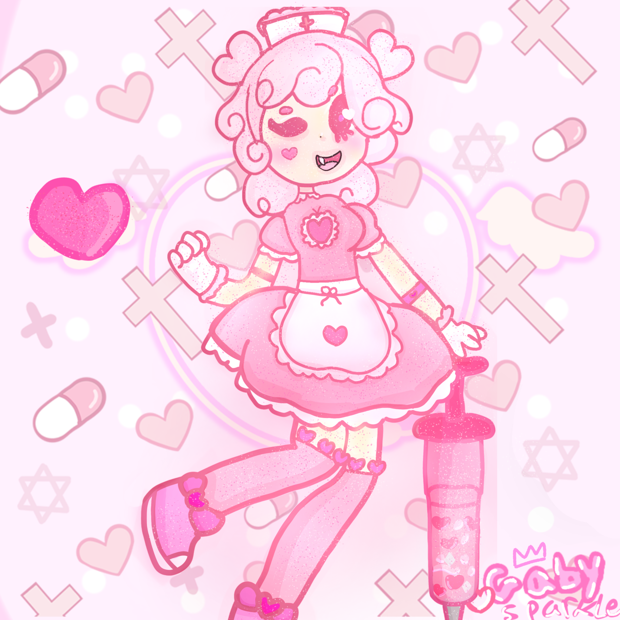 Gaby Sparkle Art kawaii pink nurse