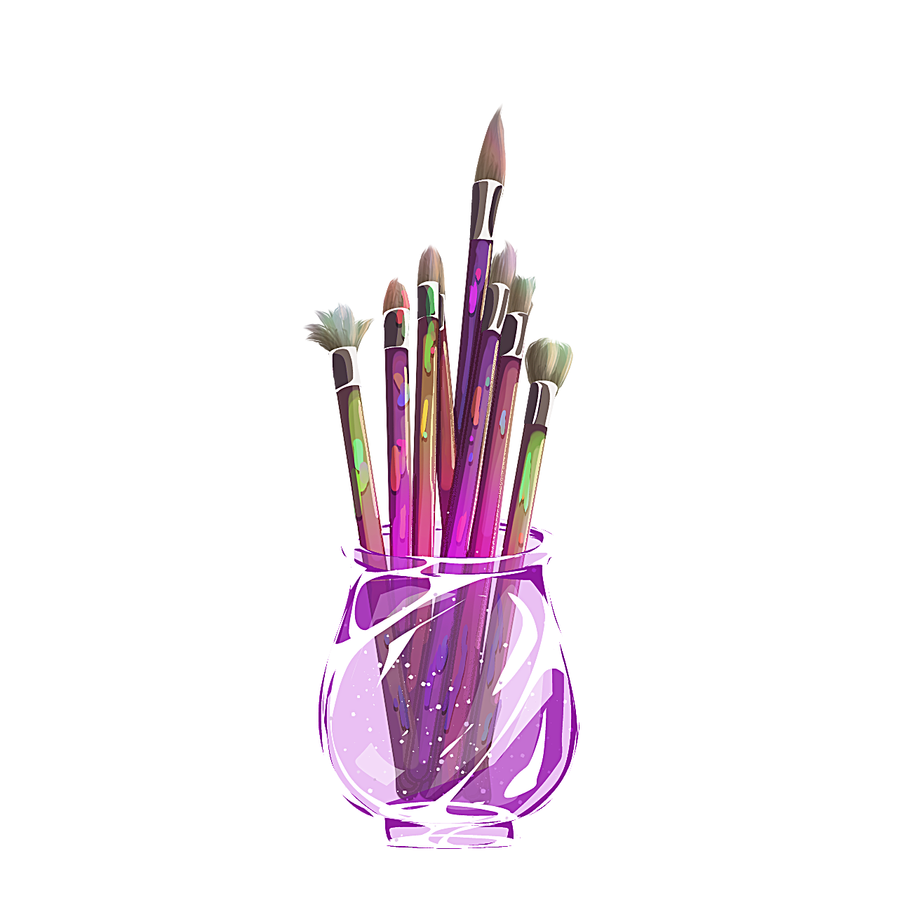 pink jar of paint brushes