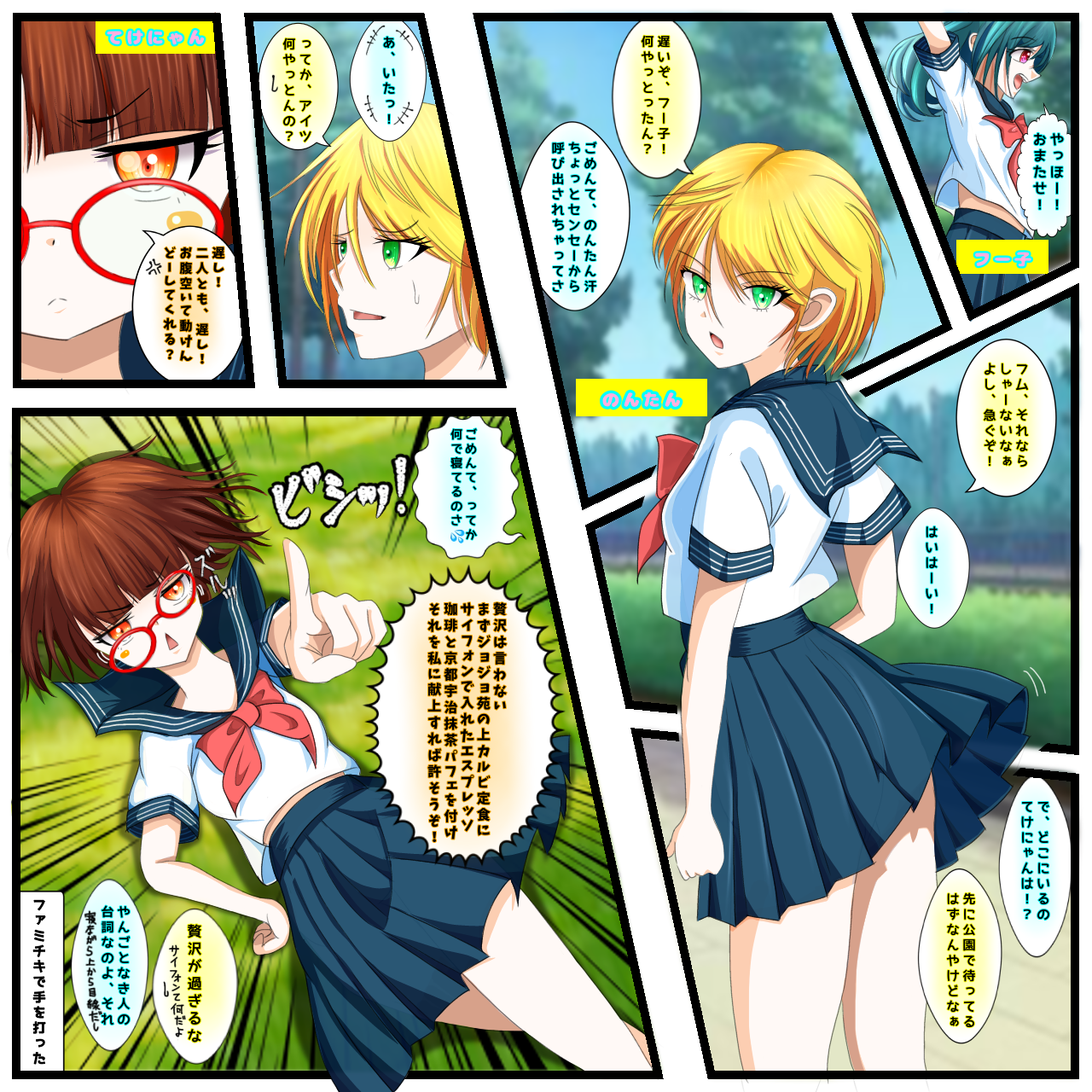 てけにゃん誕プレイラスト てけ×のーます×ふぇいすの学園生活♡