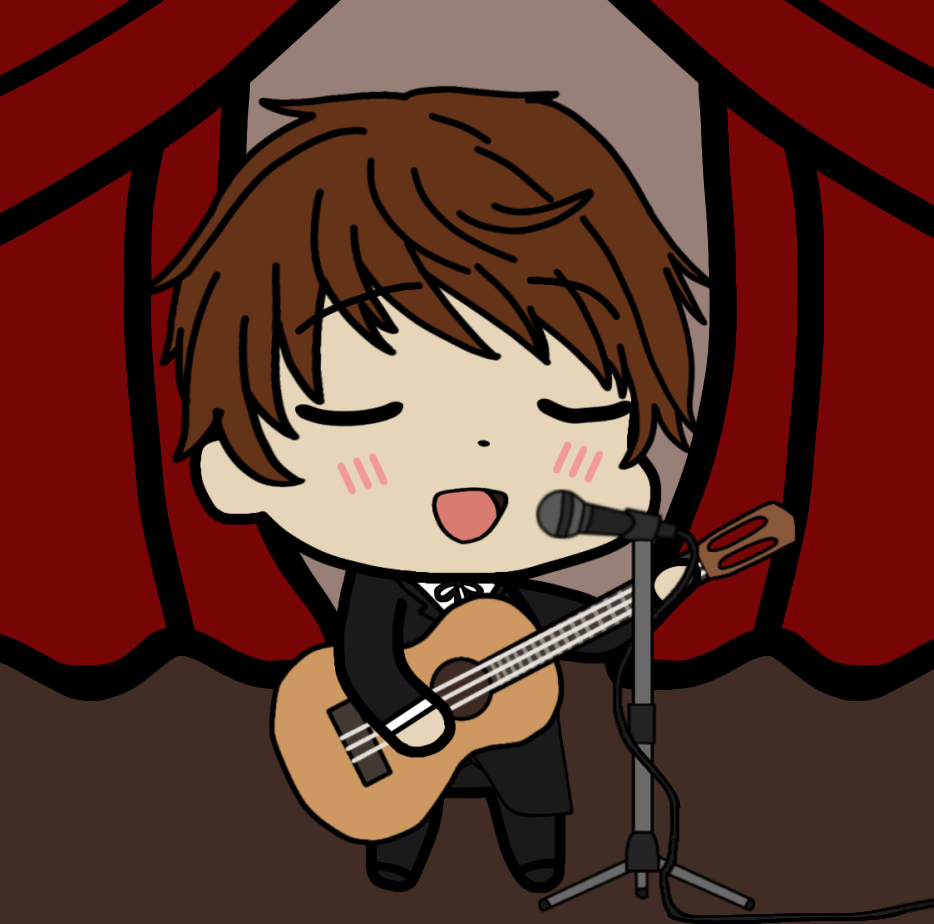 Chibi Spain playing guitar and singing