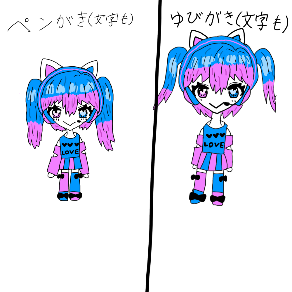 ペン描きと指描き分けた