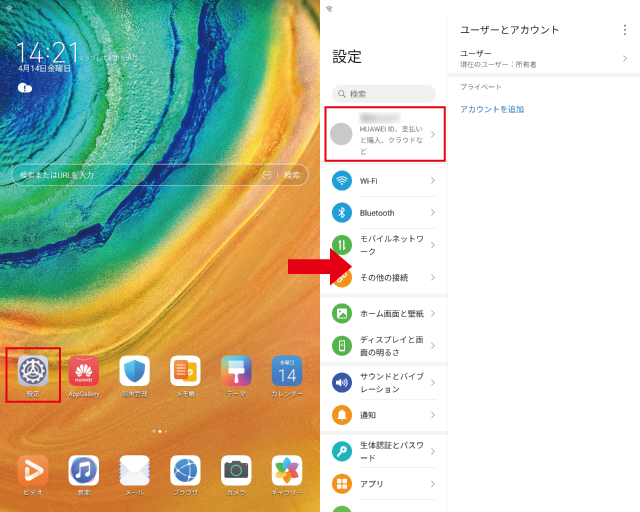 [ 設定アプリ ]>[ HUAWEI ID ]を選択します。