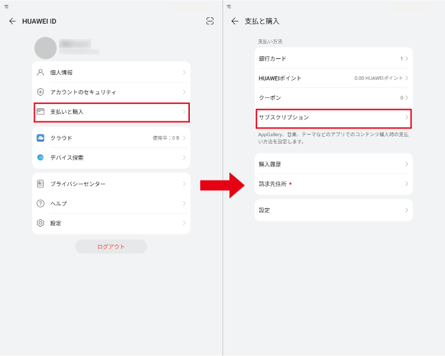 [ 支払いと購入 ]>[ サブスクリプション ]の順に選択します。