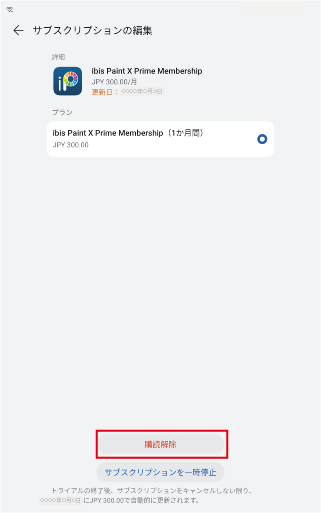 ③[ 定期購入 ]>④[ ibisPaint ]または[ ibisPaint X ]をタップします。